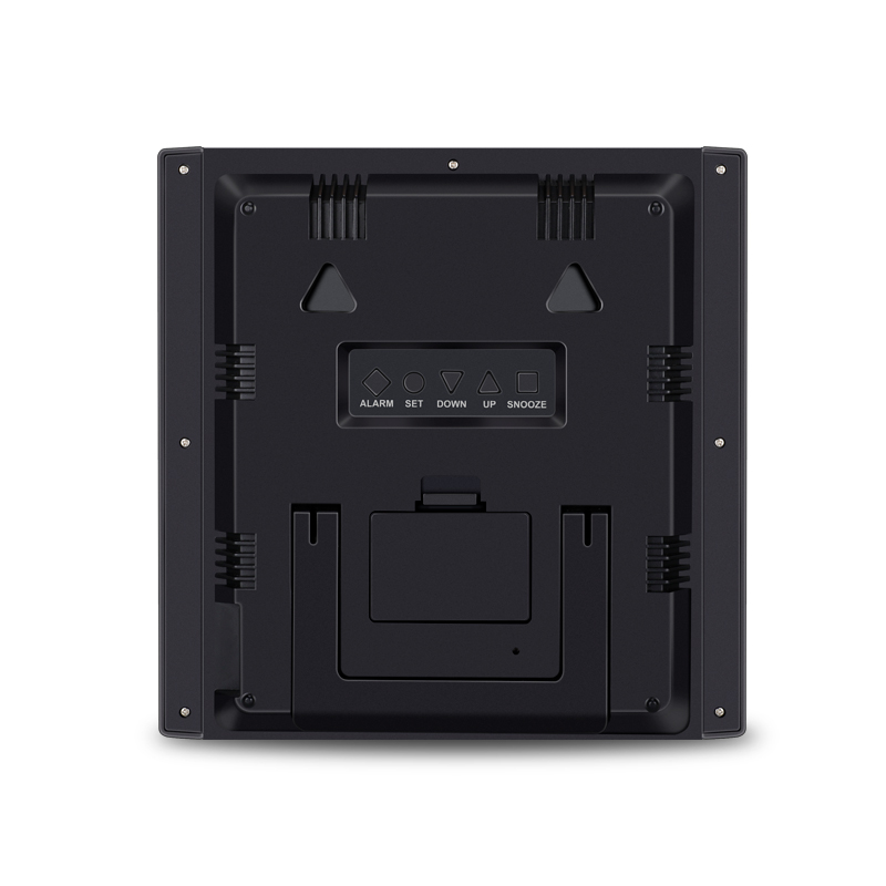 Paramètres personnalisables : Adaptez l'horloge à vos préférences grâce aux réglages ajustables pour le format 12/24 heures, l'alarme avec fonction snooze, l'affichage commutable date/heure de l'alarme et la sélection de l'unité de température.