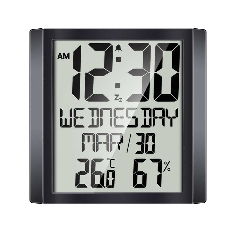 Conception multifonctionnelle : Cette horloge ne se contente pas de donner l'heure. Elle affiche la date, le jour de la semaine, la température intérieure (°C/°F) et le taux d'humidité, fournissant ainsi des informations environnementales complètes en un coup d'œil.
