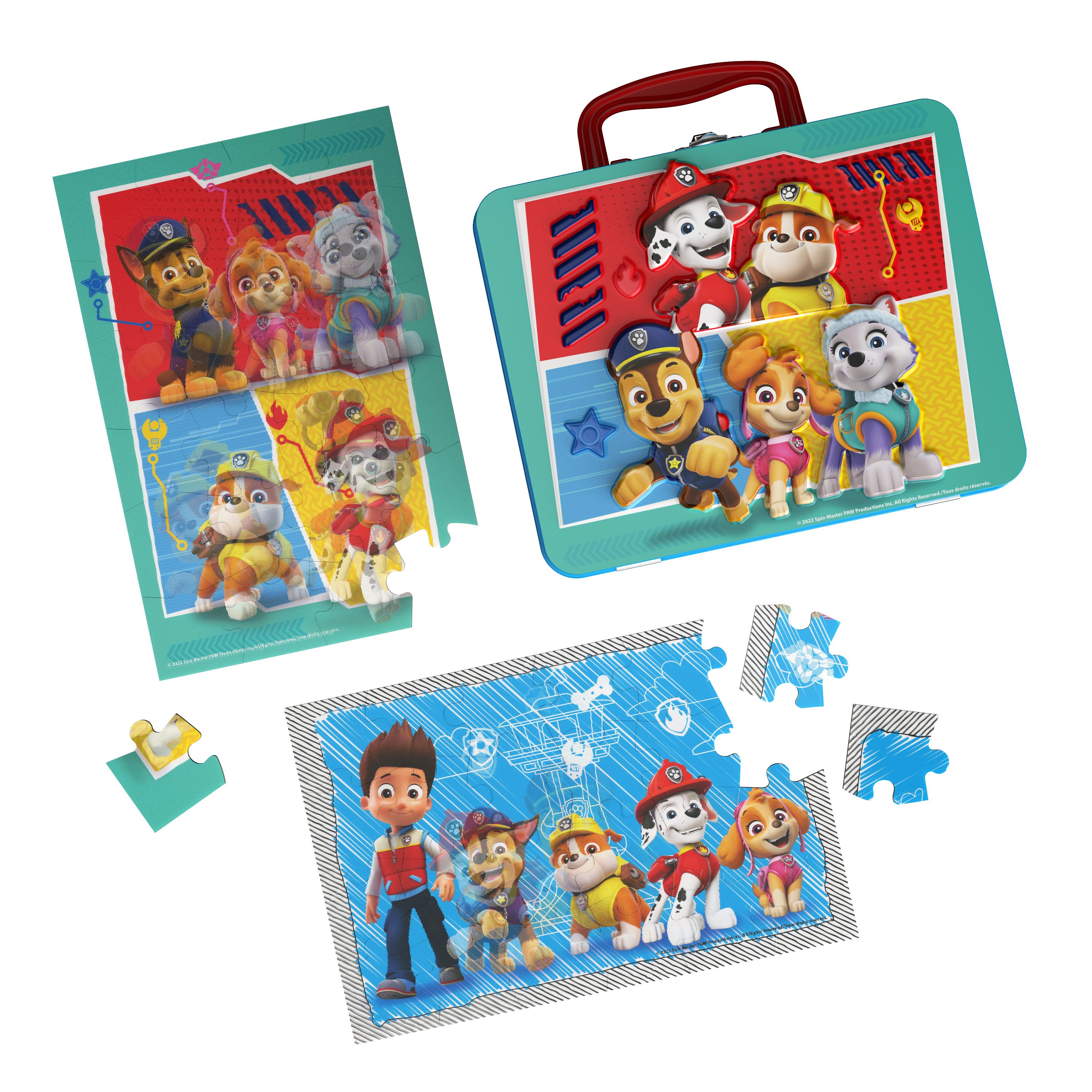 La Pat' Patrouille, toujours n°1 des dessins animés enfants. Un effet lenticulaire sur les puzzles, qui va fasciner les enfants : l’image bouge quand on change de position. L’enfant découvre donc 2 visuels de la Pat' Patrouille sur chaque puzzle. Conditionné dans une jolie valisette métallique, qui donnera envie aux enfants d’y ranger leurs trésors. 48 pièces de puzzle, de grande taille pour faciliter la manipulation par les petites mains. Dimensions d’un puzzle terminé : environ 22,8 cm x 15,2 cm. Boîte fermée. A partir de 3 ans.