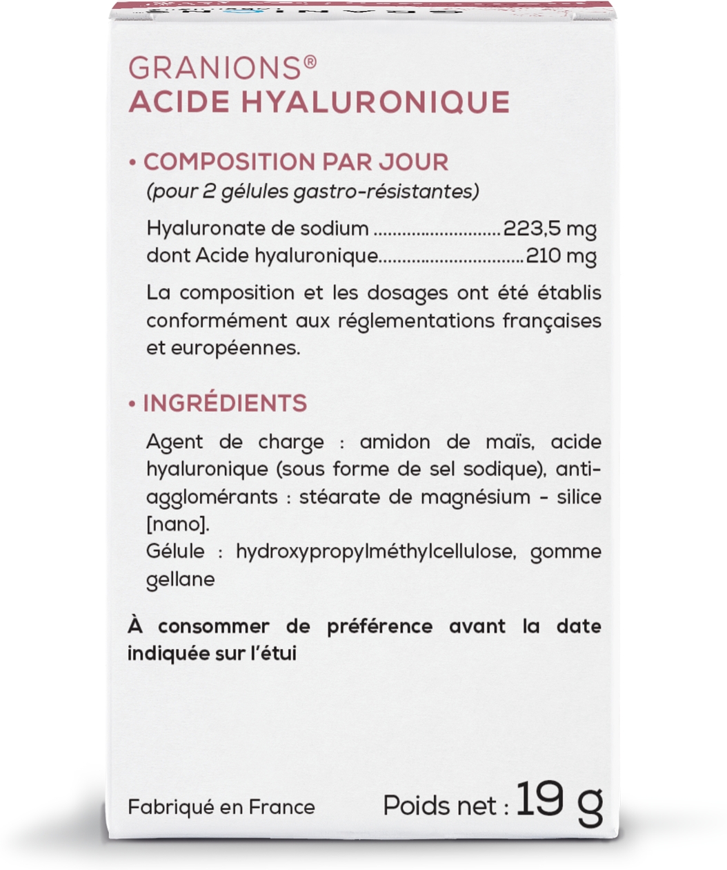 | Libellé | Granions Acide Hyaluronique 60 gélules |