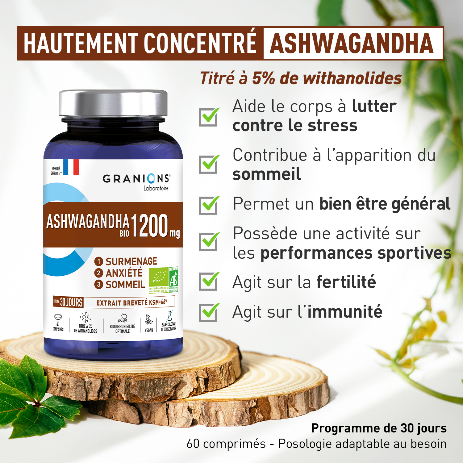 | Libellé | Granions Ashwagandha 1200mg 60 Comprimés |