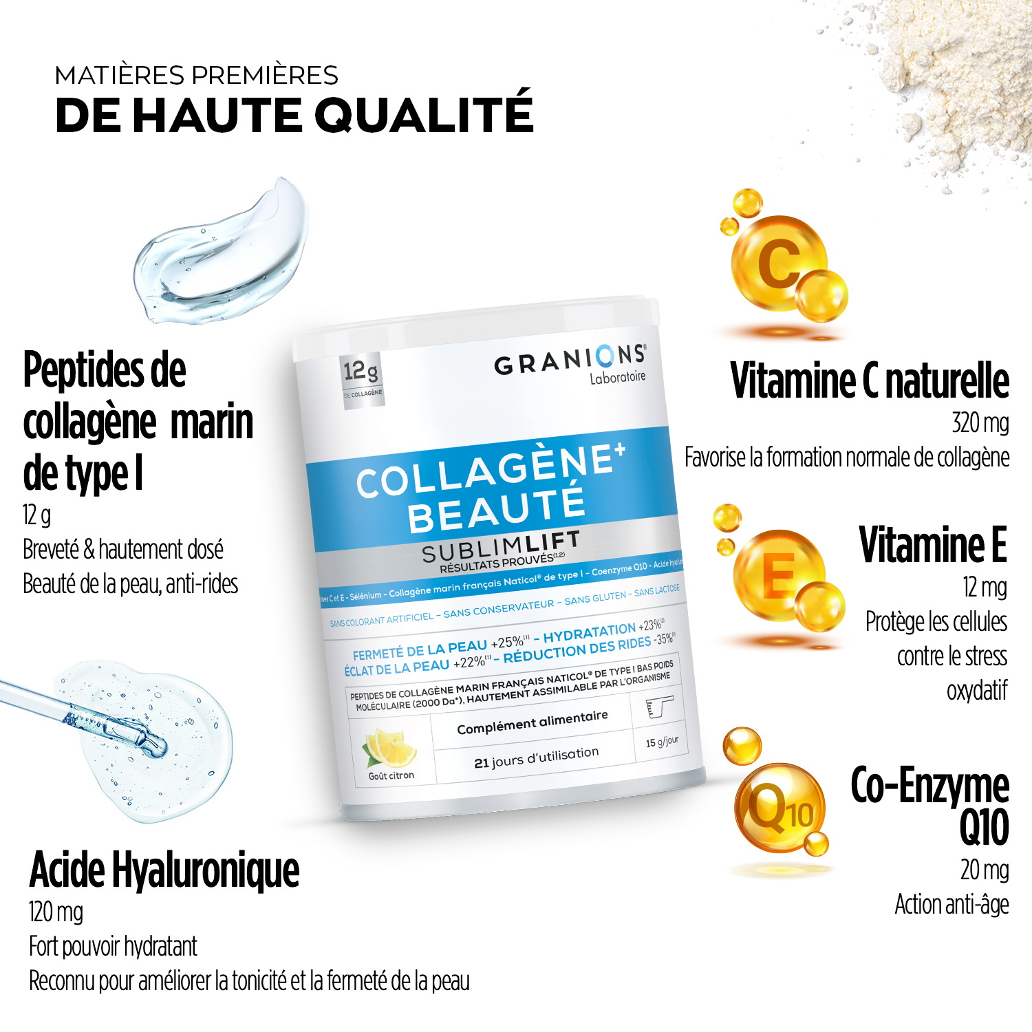 | Libellé | Granions Collagène+ Beauté Sublimlift 12g Goût Citron Poudre 315g - 21 Jours |