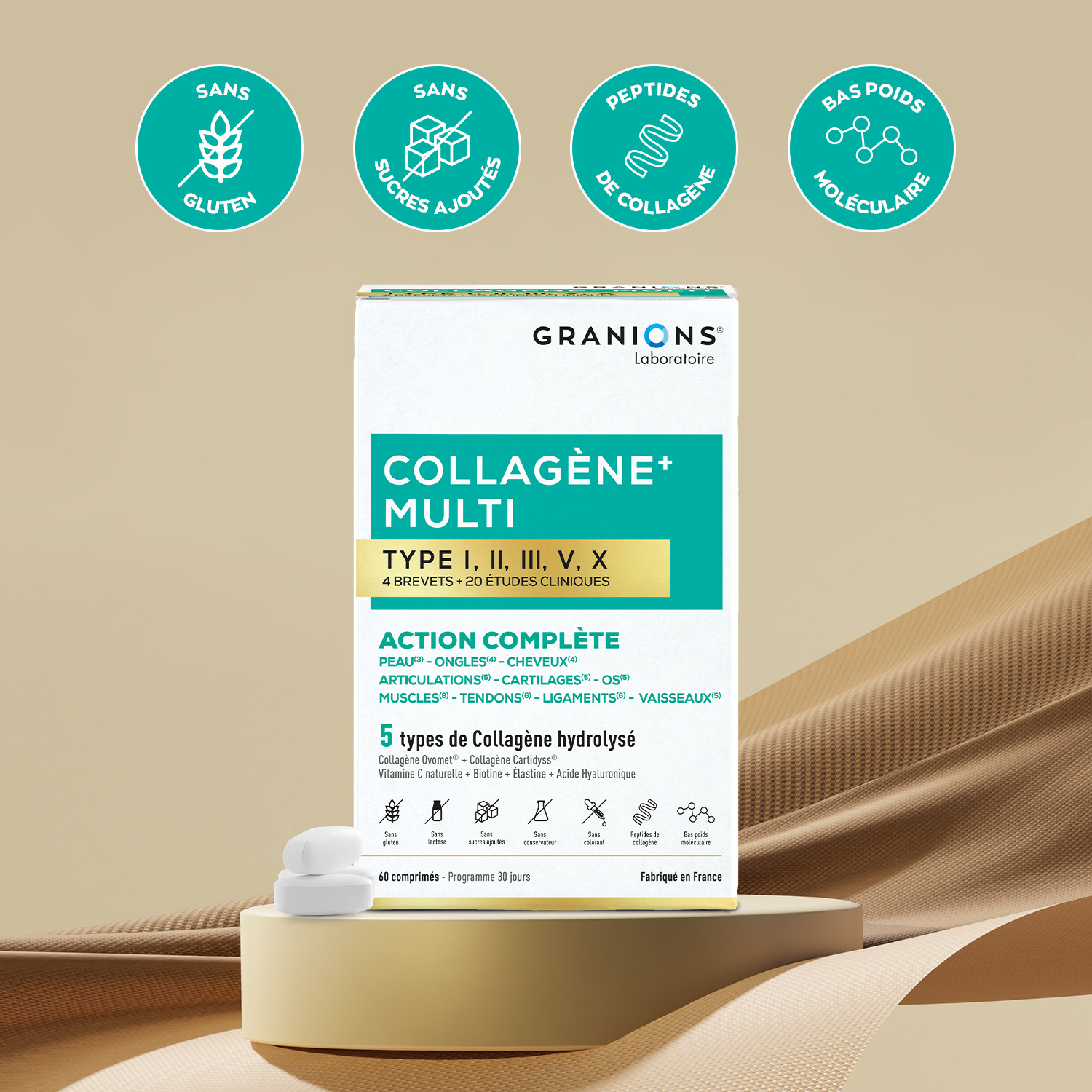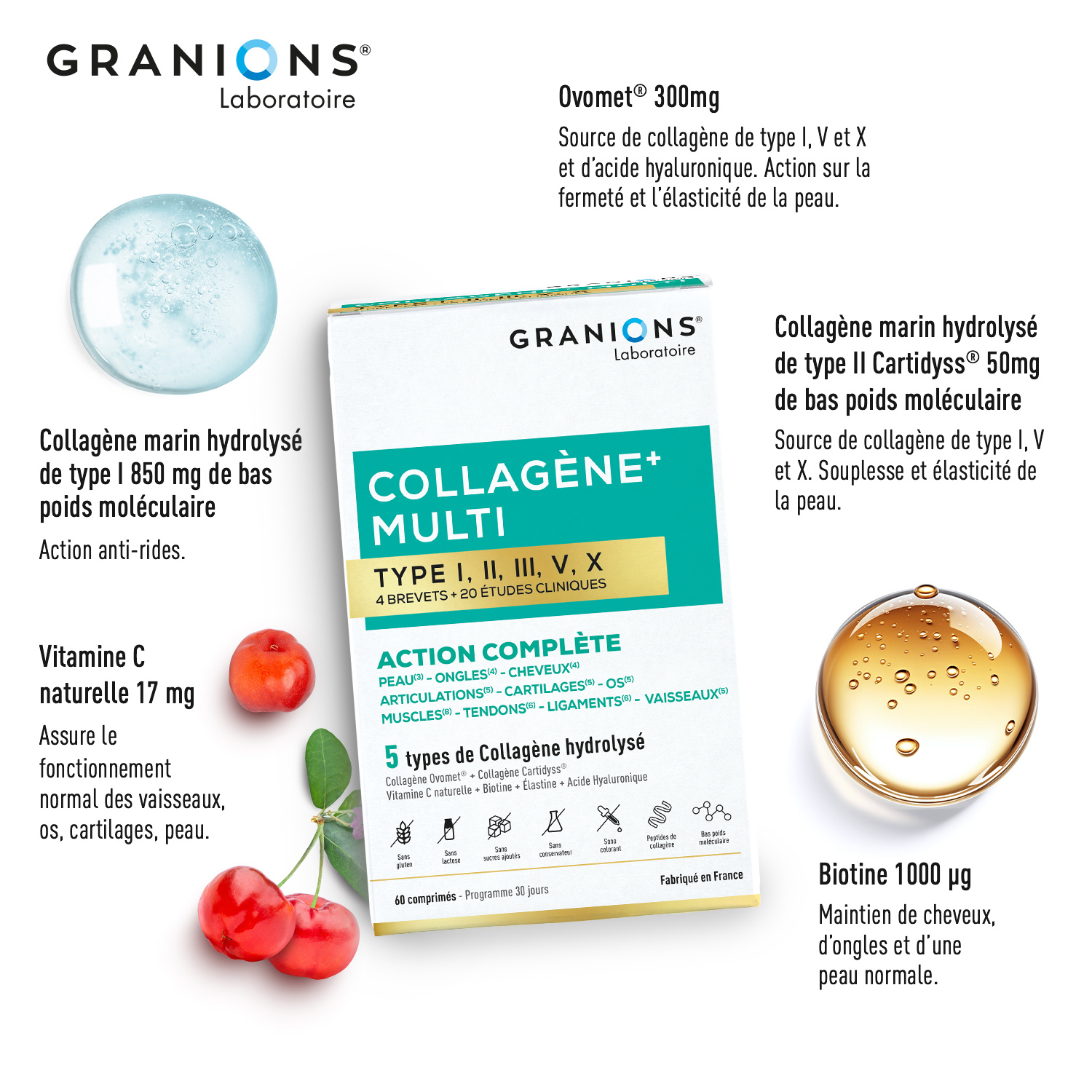 | Libellé | Granions Collagène+ Multi I.II.III.V.X - 60 Comprimés |
