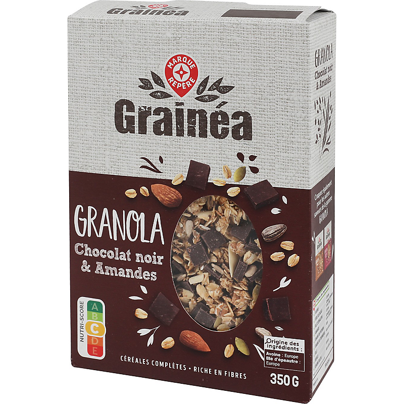 | Origine des principaux ingrédients | CÉRÉALES ORIGINE : EUROPE, FÈVE DE CACAO ORIGINE : AFRIQUE, AMÉRIQUE, ASIE ET/OU OCÉANIE*, AMANDE ORIGINE : AMÉRIQUE, EUROPE ET/OU OCÉANIE*, GRAINES ORIGINE : AMÉRIQUE, ASIE ET/OU EUROPE* * SELON LES APPROVISIONNEMENTS ET/OU LES CARACTÉRISTIQUES GUSTATIVES RECHERCHÉES |
