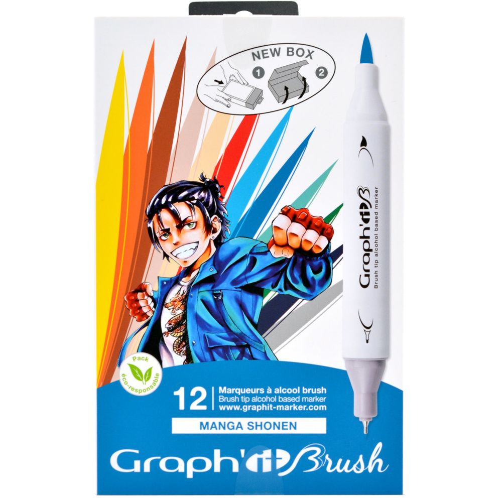 GRAPH'IT BRUSH et EXTRA FINE Set 12 marqueurs - MANGA SHONEN