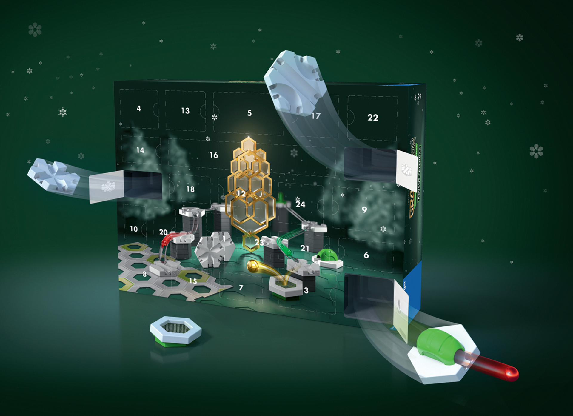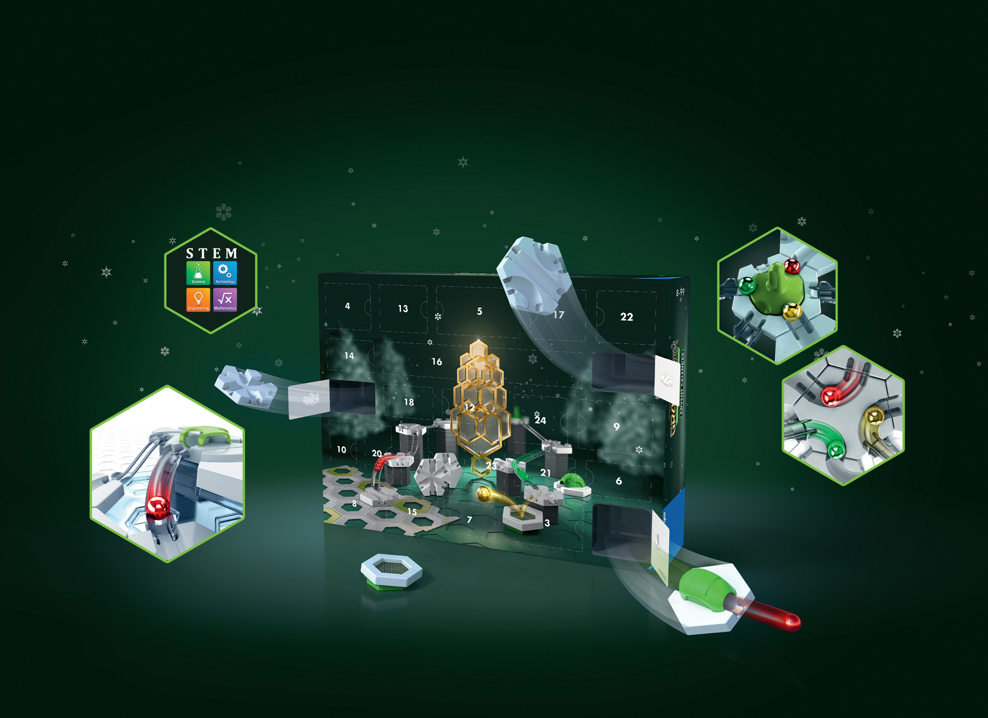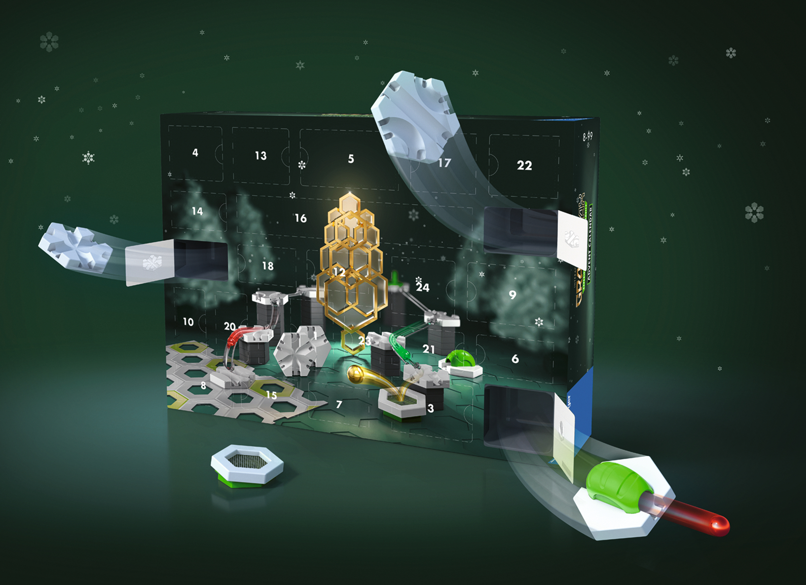 A chaque ouverture des 24 cases de ce calendrier de l'Avent, les fans de GraviTrax pourront retrouver des éléments de construction et des blocs d'action pour compléter leur collection. Un indispensable pour tous les fans de la marque ! L'utilisation peut se faire sans la nécessité d'avoir un Starter set. Ce produit est composé de matériaux issus de forêts bien gérées certifiées FSC®, de matériaux recyclés et de matériaux issus dautres sources contrôlées (FSC-C111262).