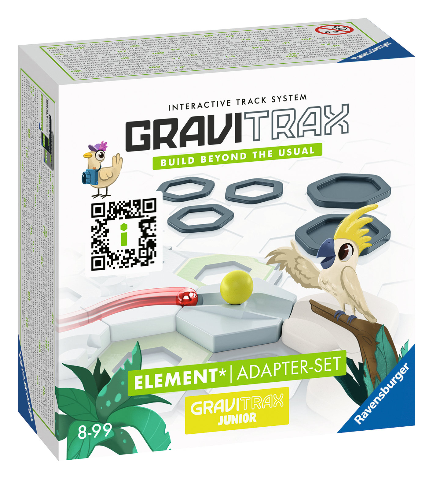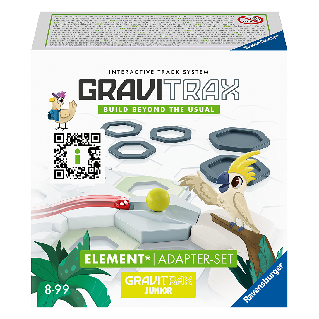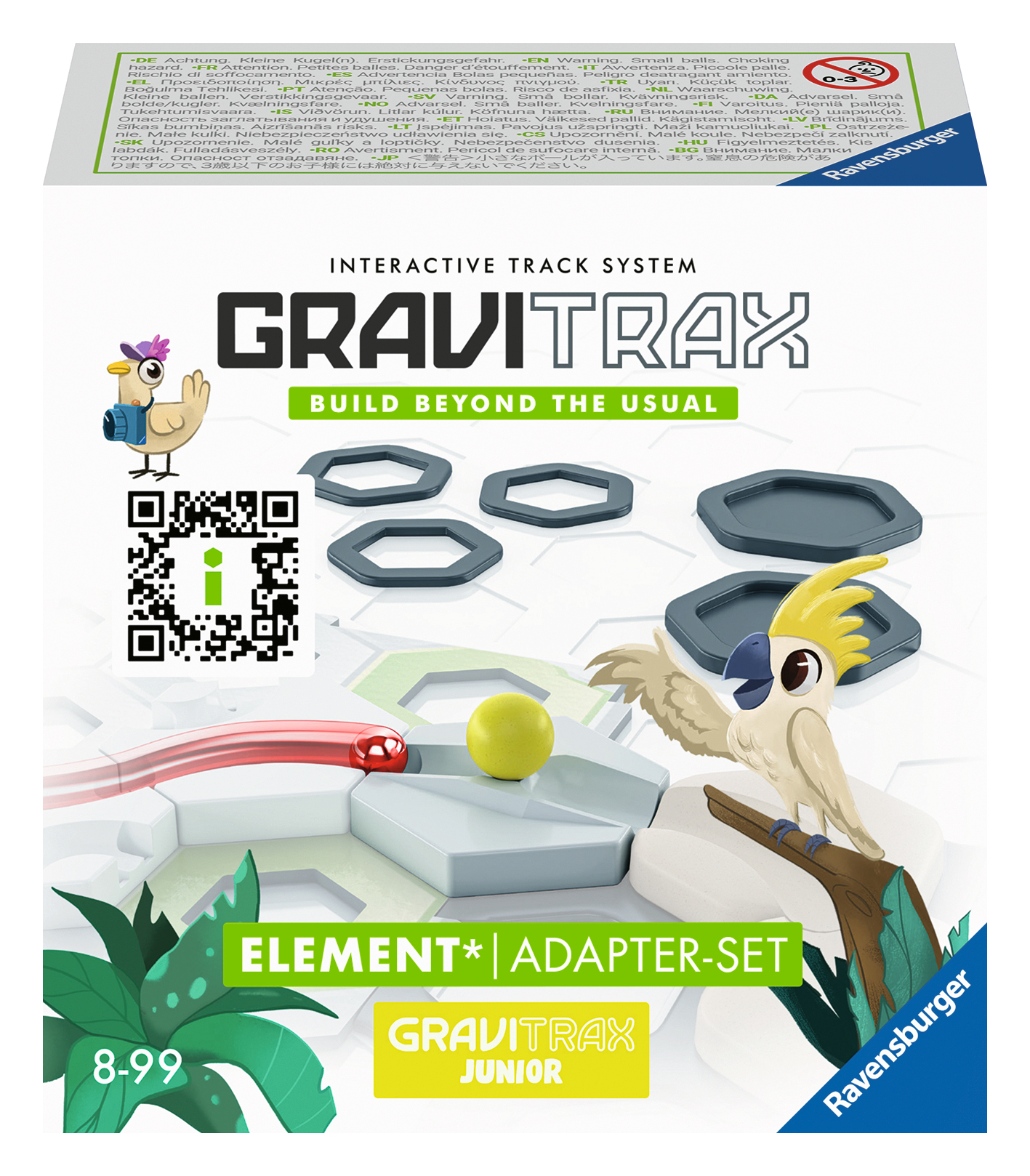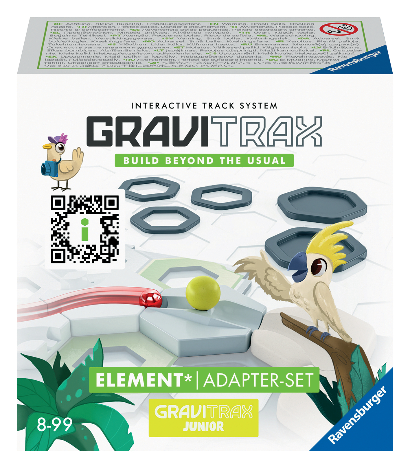 GraviTrax Element Adapter Set, un élément malin qui permet de lier GraviTrax JUNIOR, dès 3 ans, à GraviTrax, dès 8 ans, à l'aide d'adaptateurs.