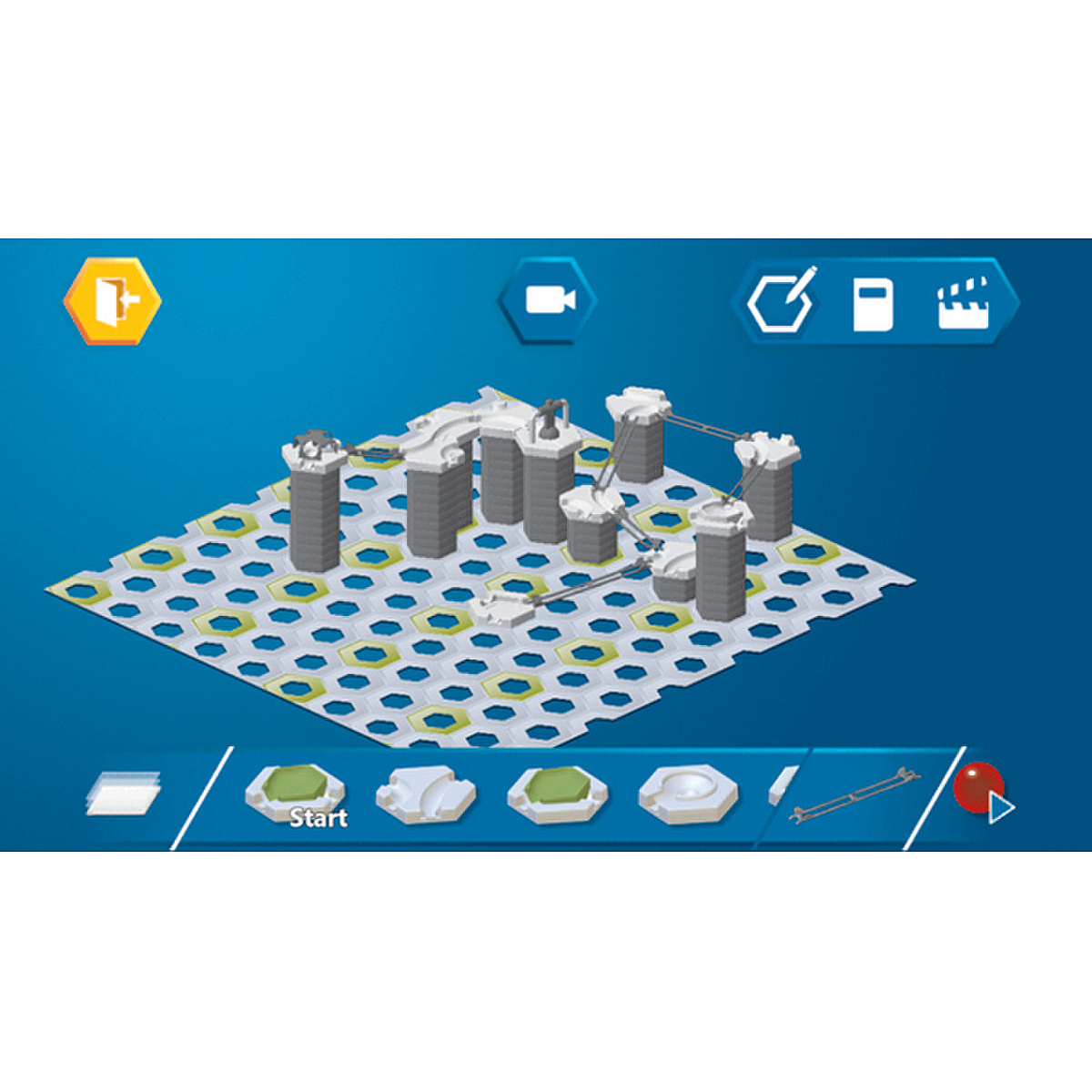 | La boîte contient | 4 plaques en carton, 2 plateformes transparentes, 6 billes, 40 blocs de construction épais, 12 blocs de construction fins, 1 bloc 3-en-1, 1 bloc départ, 21 virages, 3 intersections, 2 aiguillages, 1 tourbillon, 1 canon magnétique, 3 rails longs, 6 rails moyens, 9 rails courts, 1 marqueur d'arrivée, 4 blocs base avec inserts : 2 attrapeurs, 1 chute libre, 1 splash, 1 arrivée, 1 guide d'utilisation, 1 carnet d'exercices |