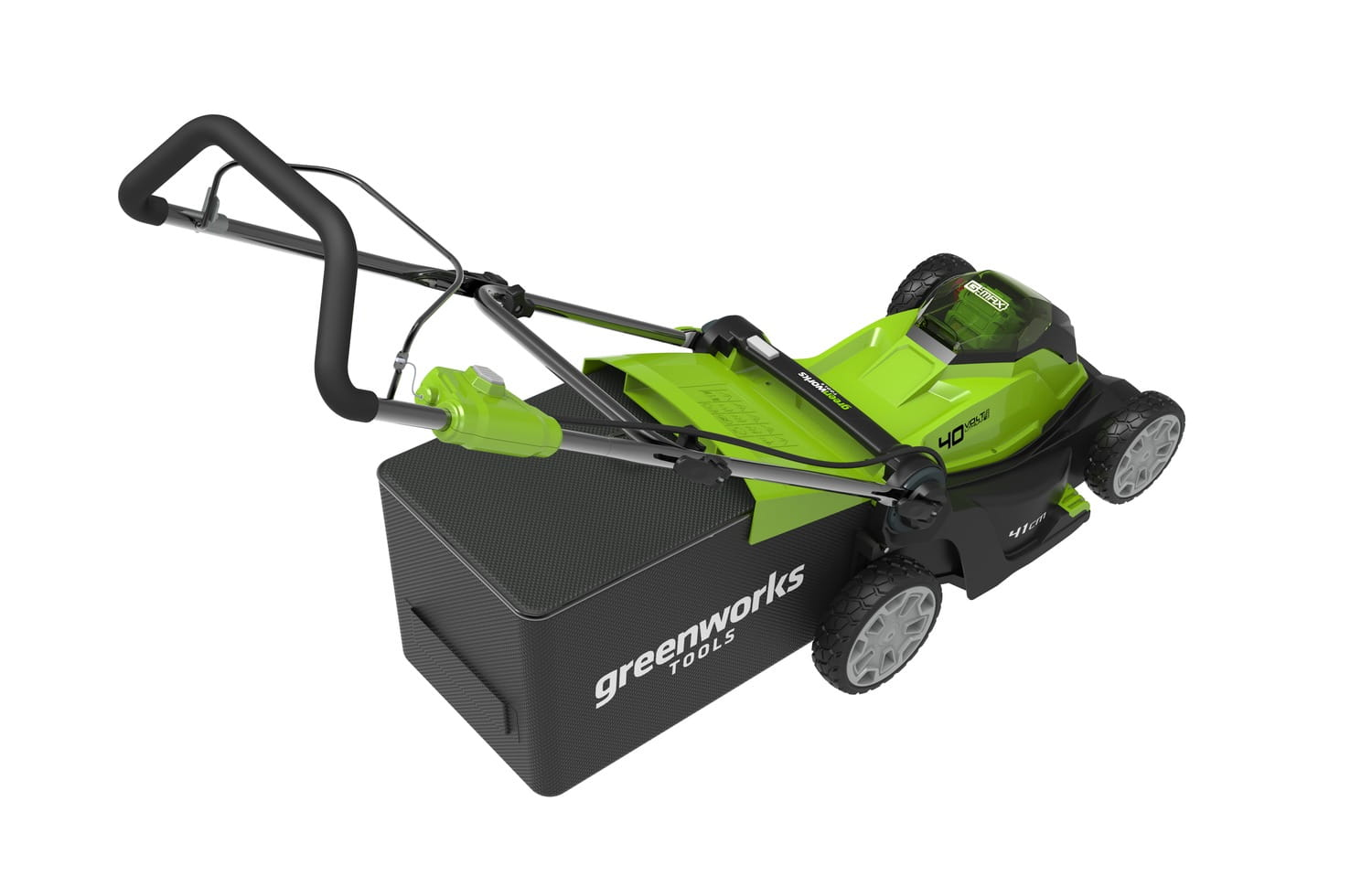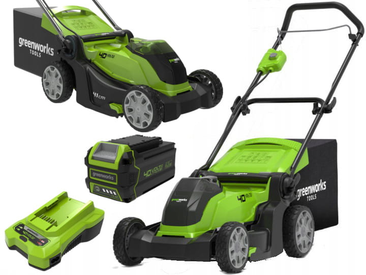 Greenworks 2504707UB. Type: Tondeuse à gazon poussée, Largeur de coupe: 41 cm, Hauteur de coupe minimale: 2,5 cm. Source d'alimentation: Batterie, Temps de charge: 2 h, Tension des piles: 40 V. Poids: 18 kg