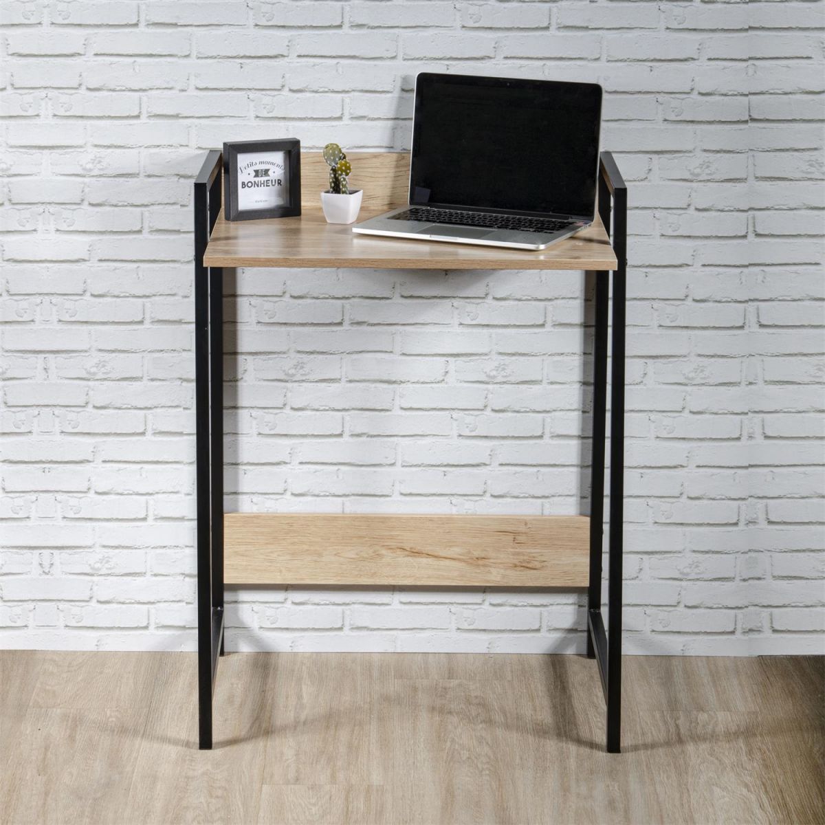 Un petit bureau d'appoint dans le pur style industriel, proposant un espace de travail discret adapté pour une utilisation dans divers types de pièce. Peut également être utilisé comme console. Piétement métallique.