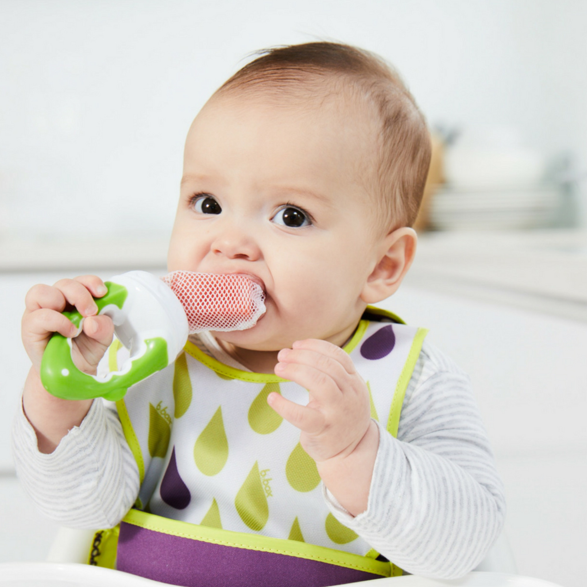 Ce sytème est également idéal lors de la délicate période des poussées dentaires, en insérant un glaçon ou un morceau de fruit congelé dans le filet, le froid soulagera efficacement le gonflement des gencives de Bébé.