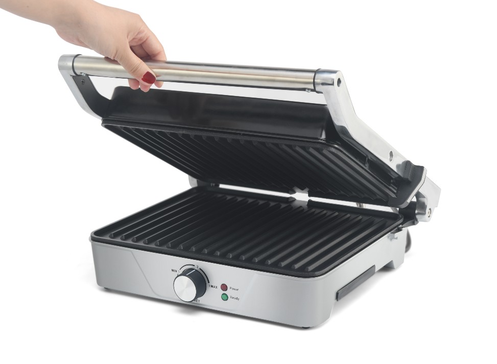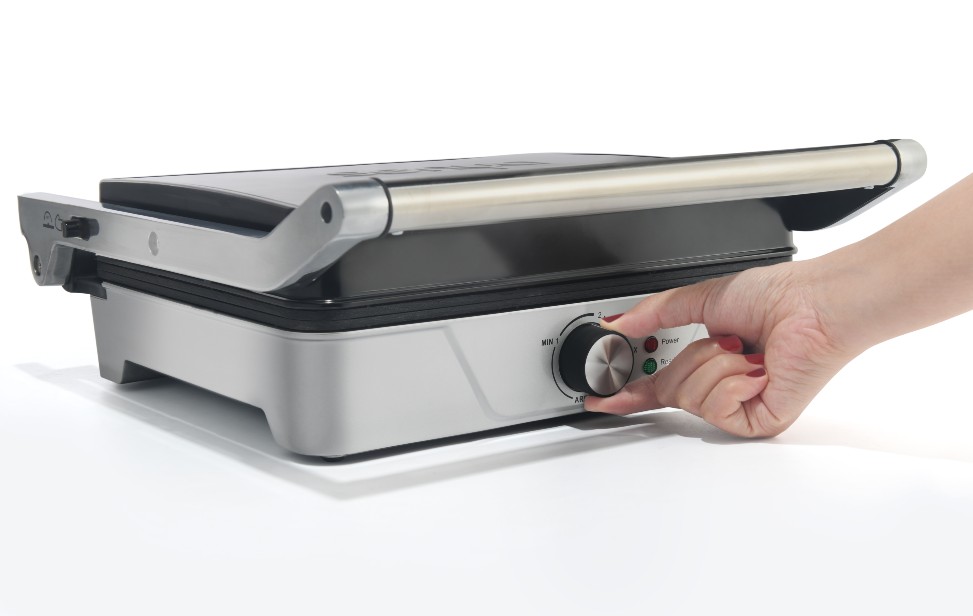 Le grill inox saura parfaitement s'intégrer dans les cuisines modernes. Avec sa poignée sécurisée CoolTouch, vous êtes protégés contre le risque de brûlures, même quand l'appareil panini atteint 220 C.