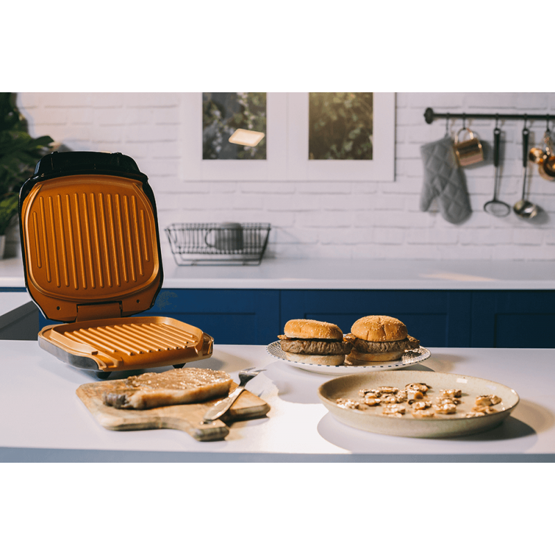 - TECHNOLOGIE : le Grill Electrique Gotham Steel™, permet de cuisiner en un rien de temps. Il grill des deux côtés, se qui justifie la rapidité.