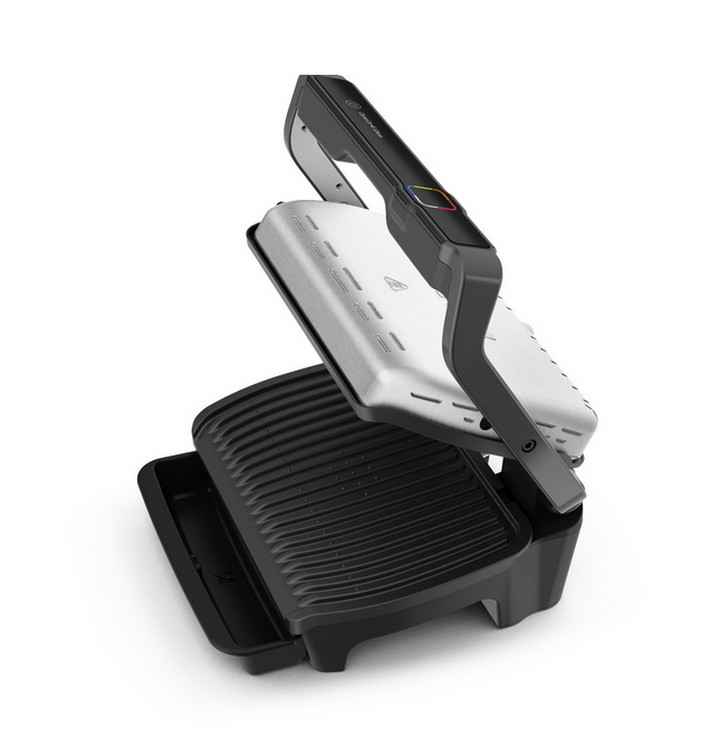 Le Tefal Optigrill Elite GC750D12 vous rend service dans la cuisine de tous les jours comme lors de soirées agréables entre amis. Sur cet appareil, vous pouvez tout cuire, gratiner ou chauffer, grâce aux 12 programmes automatiques pour hamburgers, sandwichs, poisson, fruits de mer, pommes de terre, poivrons, viande rouge, poulet, saucisse, lard, aubergine ou tomate. En mode manuel, vous pouvez compter sur 4 contrôles de température. La nouvelle interface avec l'assistant de grillade intuitif vous guide pas à pas : vous savez parfaitement quand votre viande est prête, que vous ayez choisi saignant, à point ou bien cuit. Les plaques antiadhésives sont en fonte d'aluminium. Elles mesurent 30 x 20 cm : assez pour 2 à 4 personnes. Les plateaux de cuisson et de récupération sont amovibles et vont au lave-vaisselle