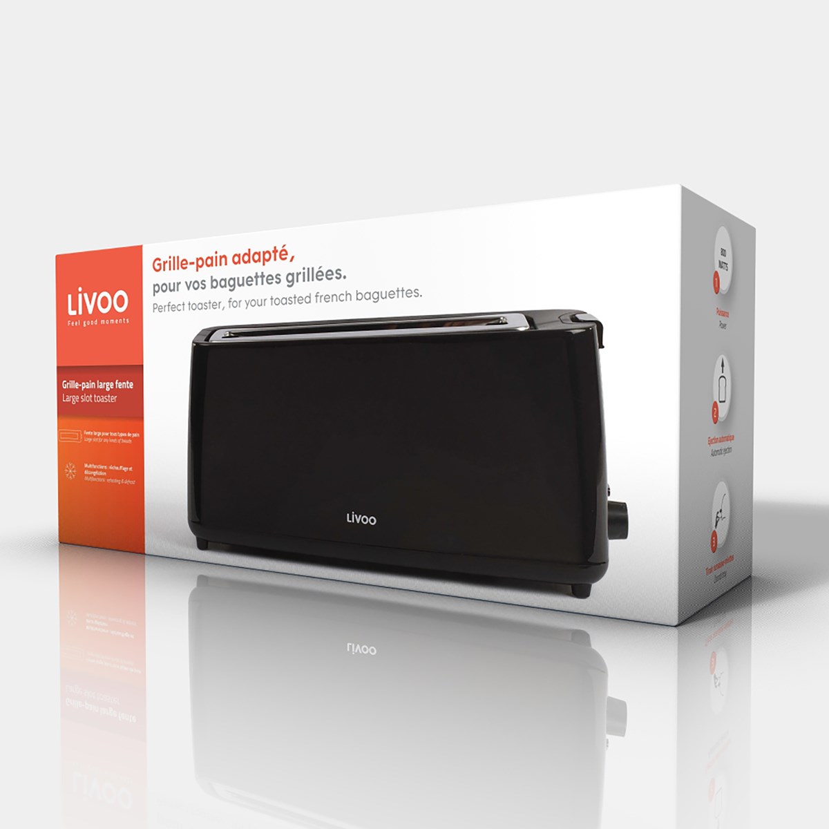 DOD168N - grille-pain 1 fente noir - Grille-pain large fente DOD168N de Livoo qui permet de griller tous types de pains.