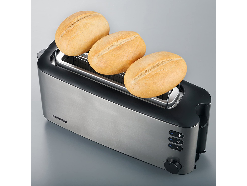 Severin AT 2515. Nombre de tranches: 2 part(s), Couleur du produit: Acier inoxydable, Matériau du boîtier/corps: Acier inoxydable. Puissance: 1000 W. Dimensions (LxPxH): 371 x 126 x 182 mm