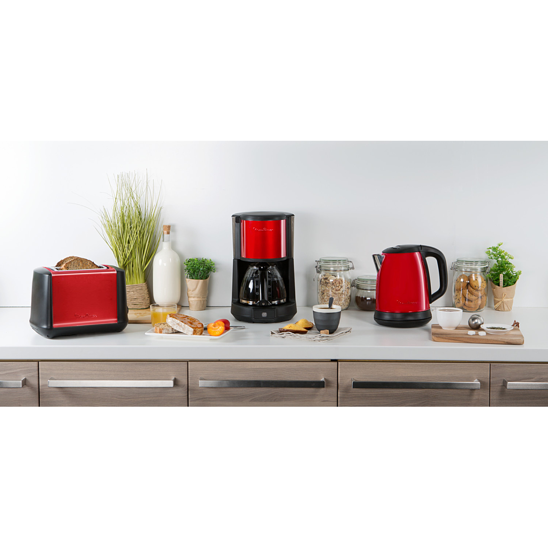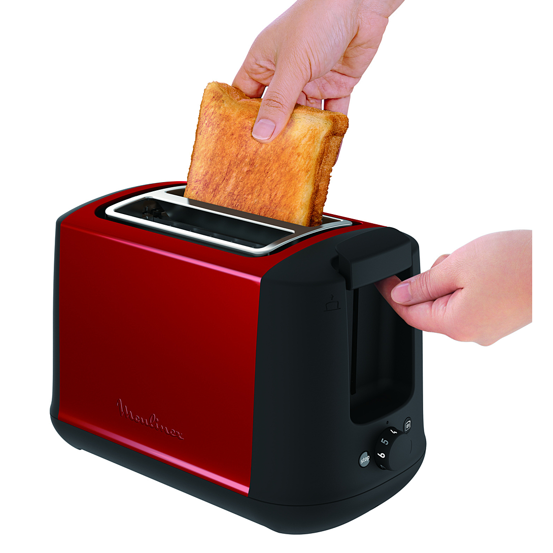 Moulinex LT340D11 grille-pain 2 part(s) Rouge, Acier inoxydable 850 W: Redécouvrez le plaisir du petit déjeuner ! Toaster double fentes à largeurs variables Grâce à ses deux fentes à largeur réglable, ce toaster est idéal pour les tranches de pain fines et épaisses Thermostat 7 niveaux de dorage permettant d'obtenir la qualité de grillage souhaité Fonction décongélation et réchauffage Pour réchauffer uniformément le pain congelé ou juste réchauffer votre tartine déjà grillée Remontée extra-haute Pour retirer facilement votre toast, même les plus petites tranches Tiroir ramasse-miettes amovible Pour nettoyer facilement votre grille-pain Fonction arrêt-éjection avec voyant lumineux Interrompt immédiatement le grillage Produit réparable pendant 10 ans - Conçu pour être réparé facilement