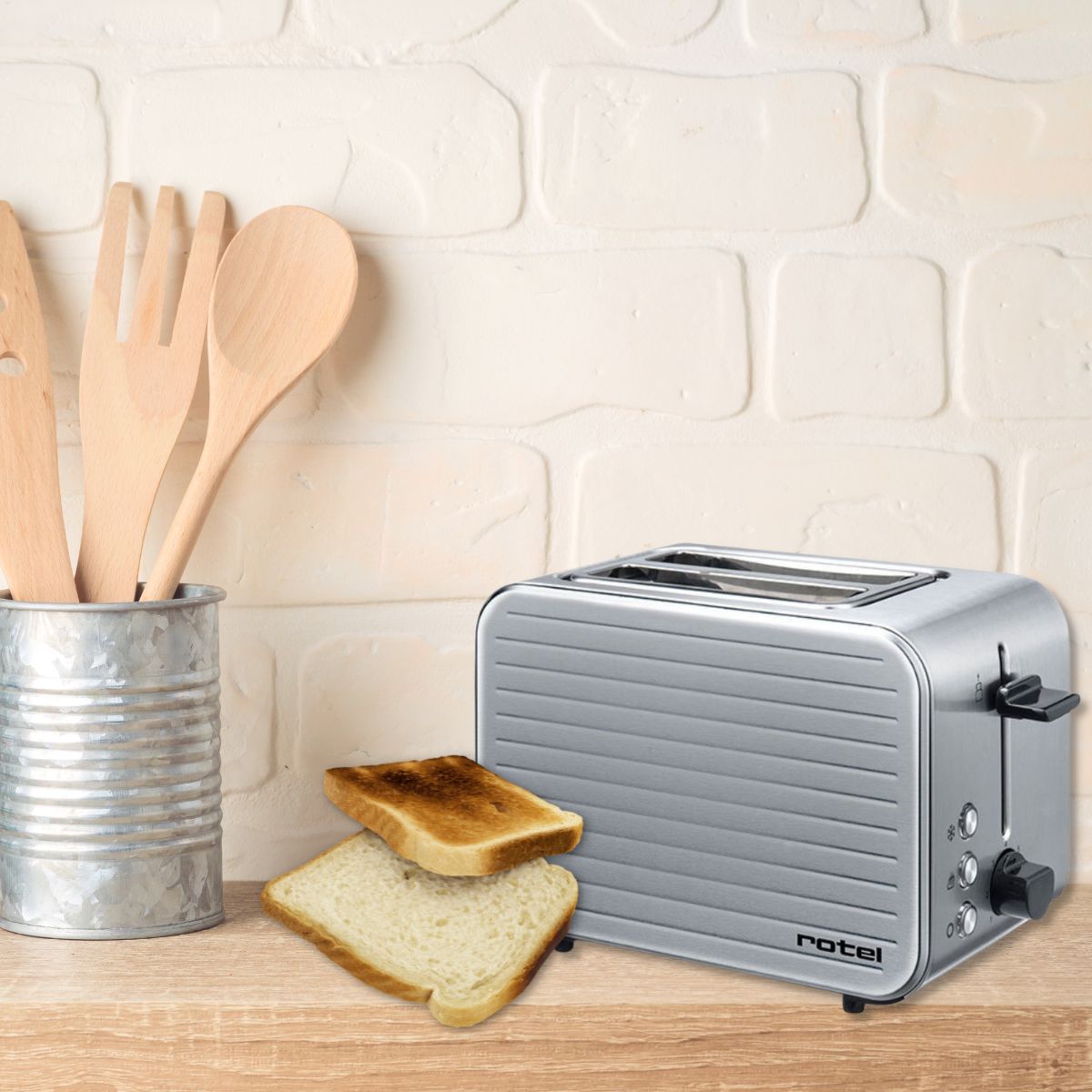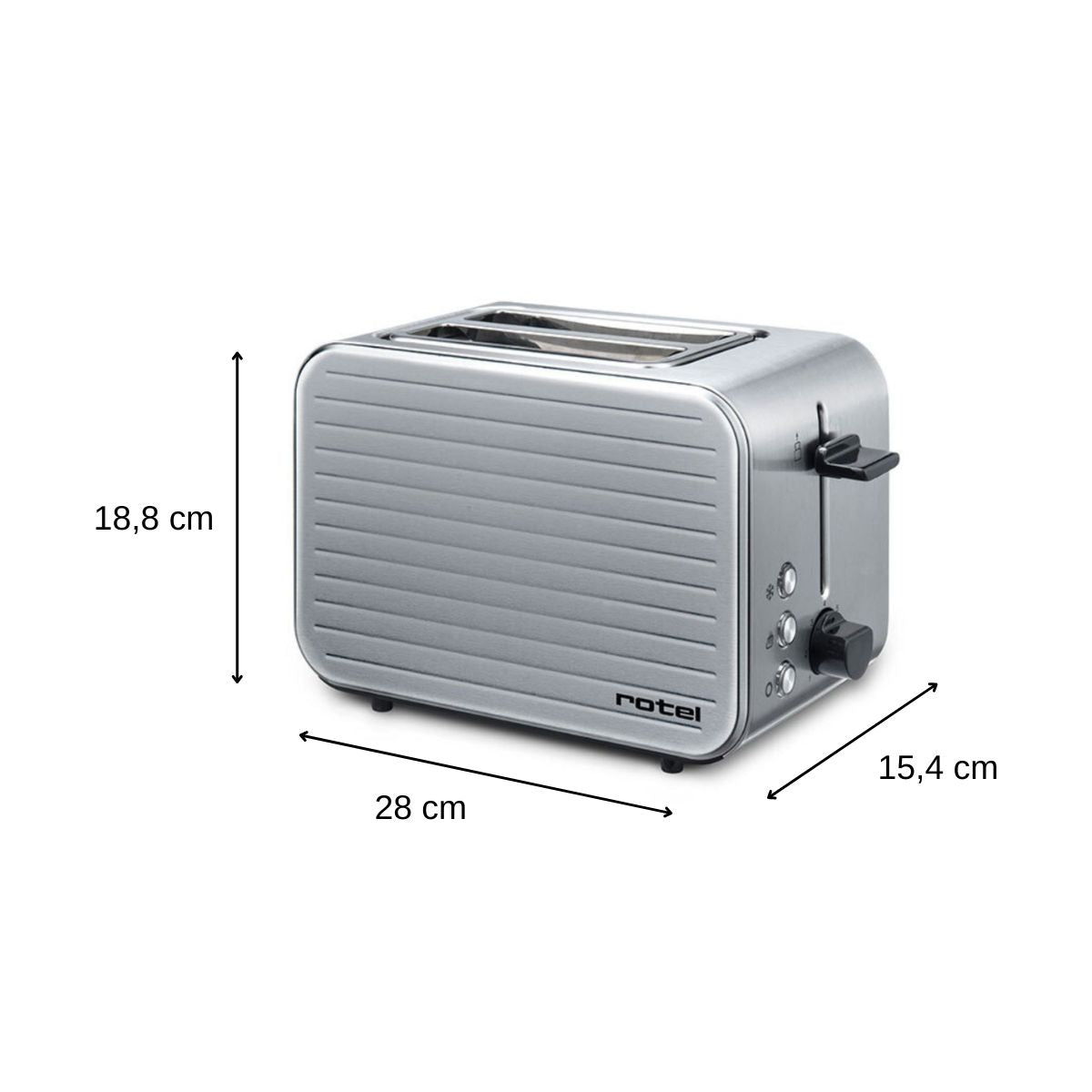 LE PETIT + : Ce grille pain possède plusieurs avantages comme le tiroir de récupération des miettes, les 7 niveaux de réglages de la chaleur pour varier le grillage de vos toasts ou encore la fonction décongélation. COMPOSITION : Chromé DIMENSIONS : Ce grille pain mesure 28 cm de long et 15,4 cm de large pour une hauteur de 18,8 cm permettant de griller le pain de mie, le pain aux graines ou encore le pain de campagne. UTILISATION : Grâce à ces fonctions, ce grille-pain est très pratique pour la cuisine du quotidien, vous pouvez ainsi préparer des toasts pour vos repas ; le tiroir de récupération des miettes est parfait pour un nettoyage facile et rapide de votre grille pain. Ce grille pain est un appareil électroménager très utile dans la cuisine et pas seulement pour faire griller le pain mais aussi pour le décongeler ou simplement le réchauffer. Vous pouvez utiliser votre grille pain afin de réaliser des avocado toasts, des tartines pour le petit déjeuner ou le goûter, des tartines repas gratinées, des toasts pour l'apéritif... Rotel est une marque suisse d’électroménager. Cela fait plus de 70 ans que Rotel est sur le marché de l’électroménager et la marque a conclu un partenariat exclusif avec Fackelmann France afin de proposer ses produits dans l'hexagone. Elle est notamment spécialisée dans le petit électroménager. La marque Rotel possède un design épuré qui représente parfaitement ses appareils haut de gamme. L’expertise de Rotel se remarque sur la durée. En effet, la marque s’est placée sur le marché suisse grâce à son expertise dans les moteurs électriques. Le savoir-faire et la recherche continuelle de l’innovation font de Rotel une marque proactive, à l’écoute de ses clients et de haute qualité.