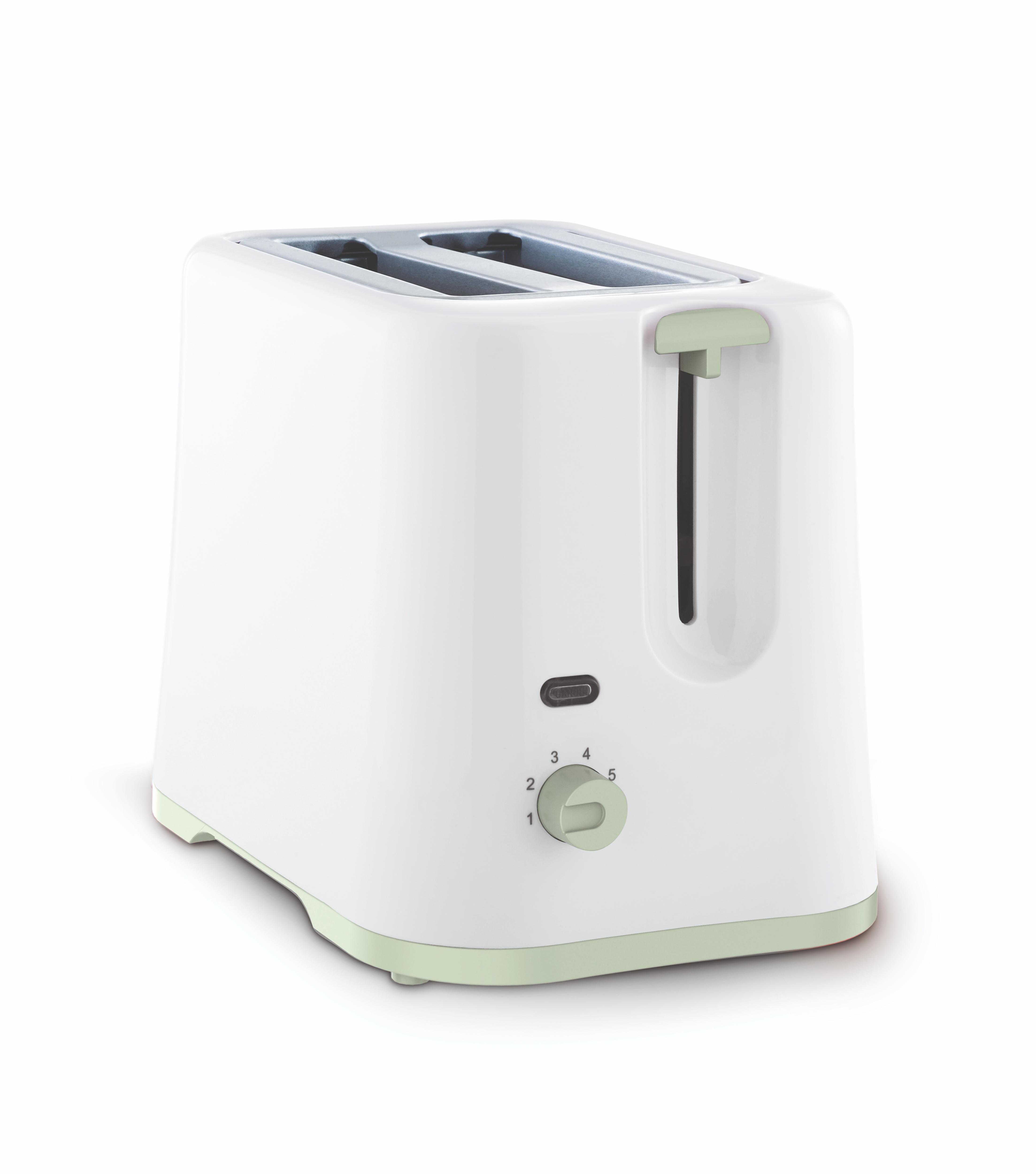 Grille pain 2 fentes ; thermostat éléctronique ; tiroir ramasse-miette amovible ; bouton d'arrêt immédiat ; 220-240V / 800W