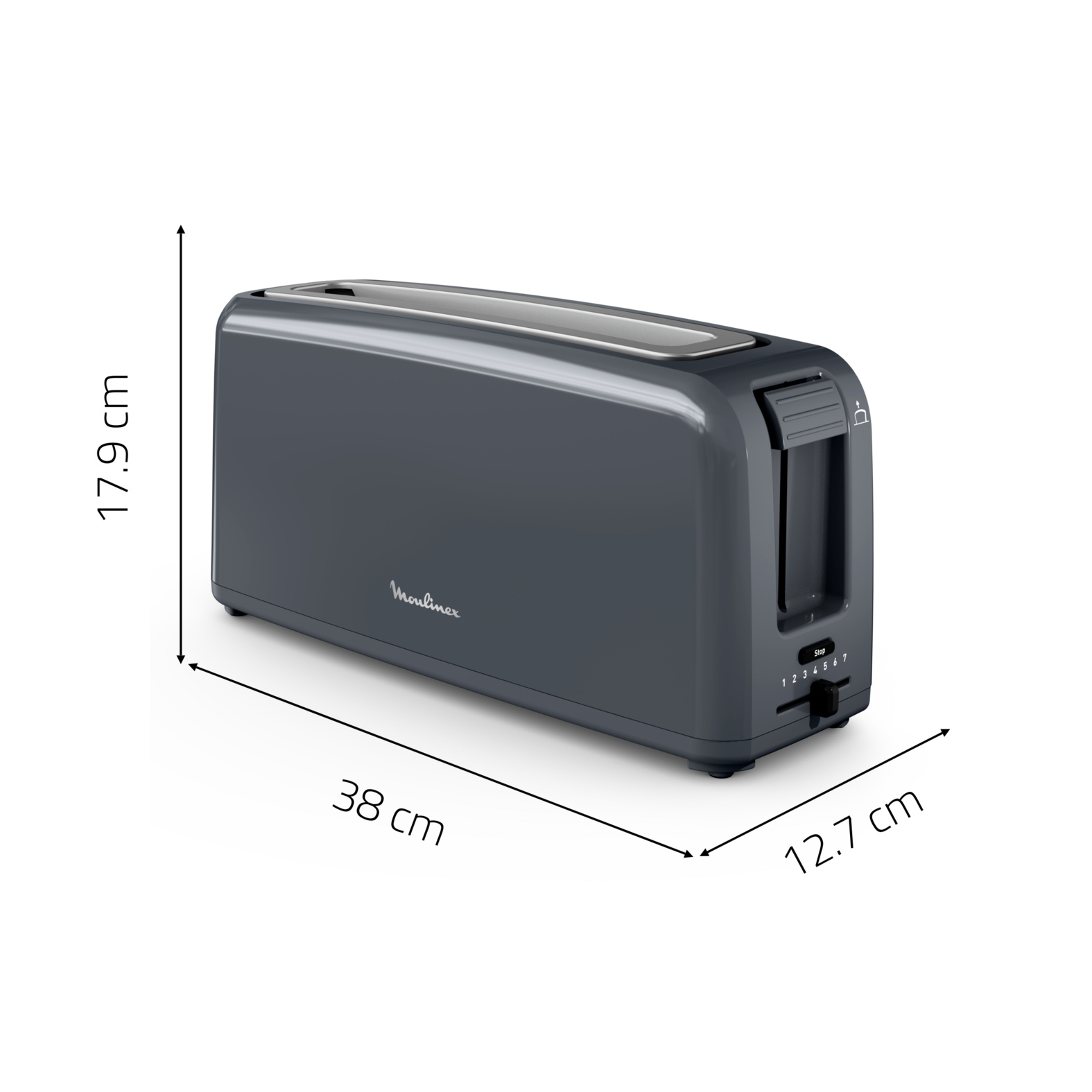 Avec Plaino de Moulinex, allez directement à l'essentiel ! La longue fente unique du grille-pain est conçue pour accueillir tout type de pain, des tranches épaisses de pain de seigle aux longues tranches de baguette. Obtenez des tranches parfaitement grillées grâce aux 7 niveaux de dorage et une fonction d'arrêt pratique, et retirez-les en toute simplicité grâce au système de surélévation qui reste froid au toucher. Le grille-pain est également doté d'un tiroir ramasse-miettes amovible pour un nettoyage rapide et facile.