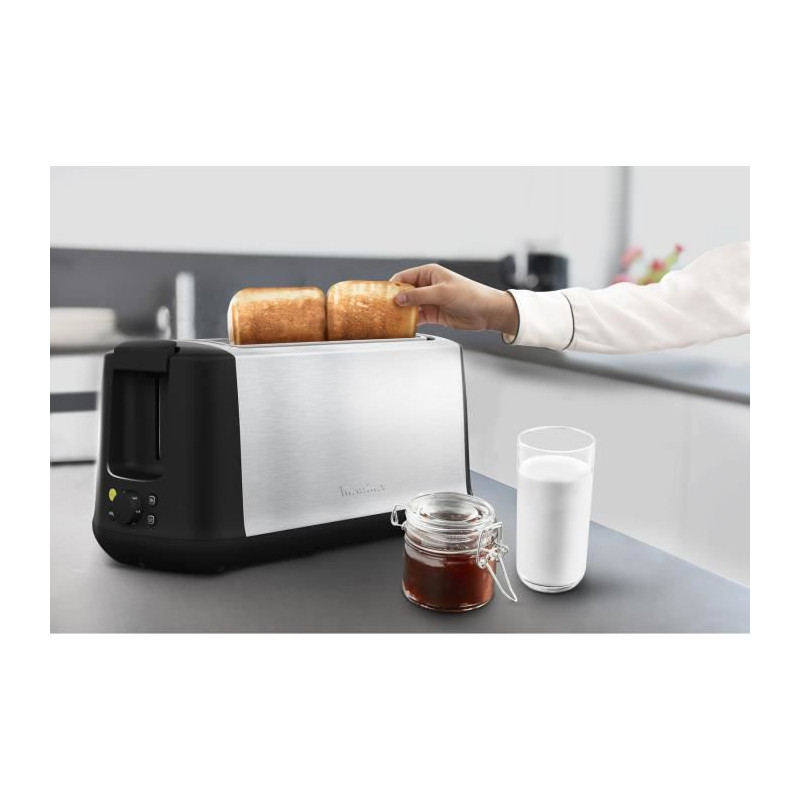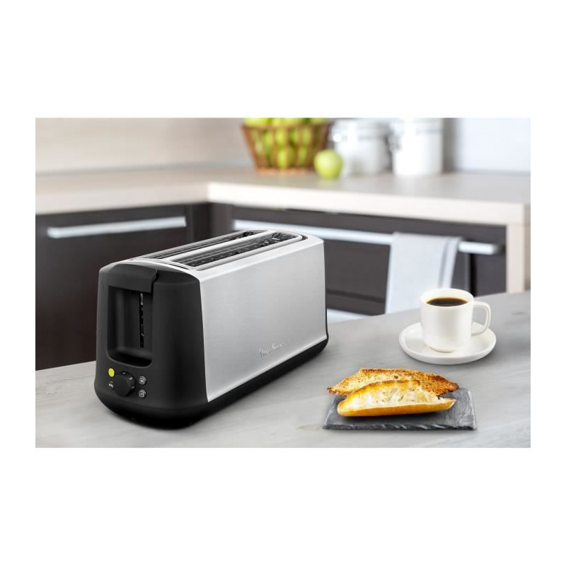 Avec le grille-pain Subito Select 2 longues fentes, dégustez des tartines parfaitement grillées, jour après jour, en toute simplicité. La fonction ECO exclusive chauffe uniquement un côté du grille-pain, permettant de réaliser jusqu'à 37 % d'économies d'énergie. Ses fentes à largeur variable sont idéales pour les tranches de pain fines et épaisses, tandis que son design intelligent intègre des fonctions pratiques pour griller votre pain sans effort : 7 niveaux de dorage, fonction de surélévation pour retirer les tranches de pain, même les plus petites. Les autres fonctions incluent un bouton Arrêt pour interrompre facilement le dorage à tout moment, une fonction Décongélation et Réchauffage avec témoins lumineux et un tiroir ramasse-miettes amovible pour faciliter le nettoyage. Enfin, son design élégant en inox s'intégrera parfaitement dans n'importe quelle cuisine.