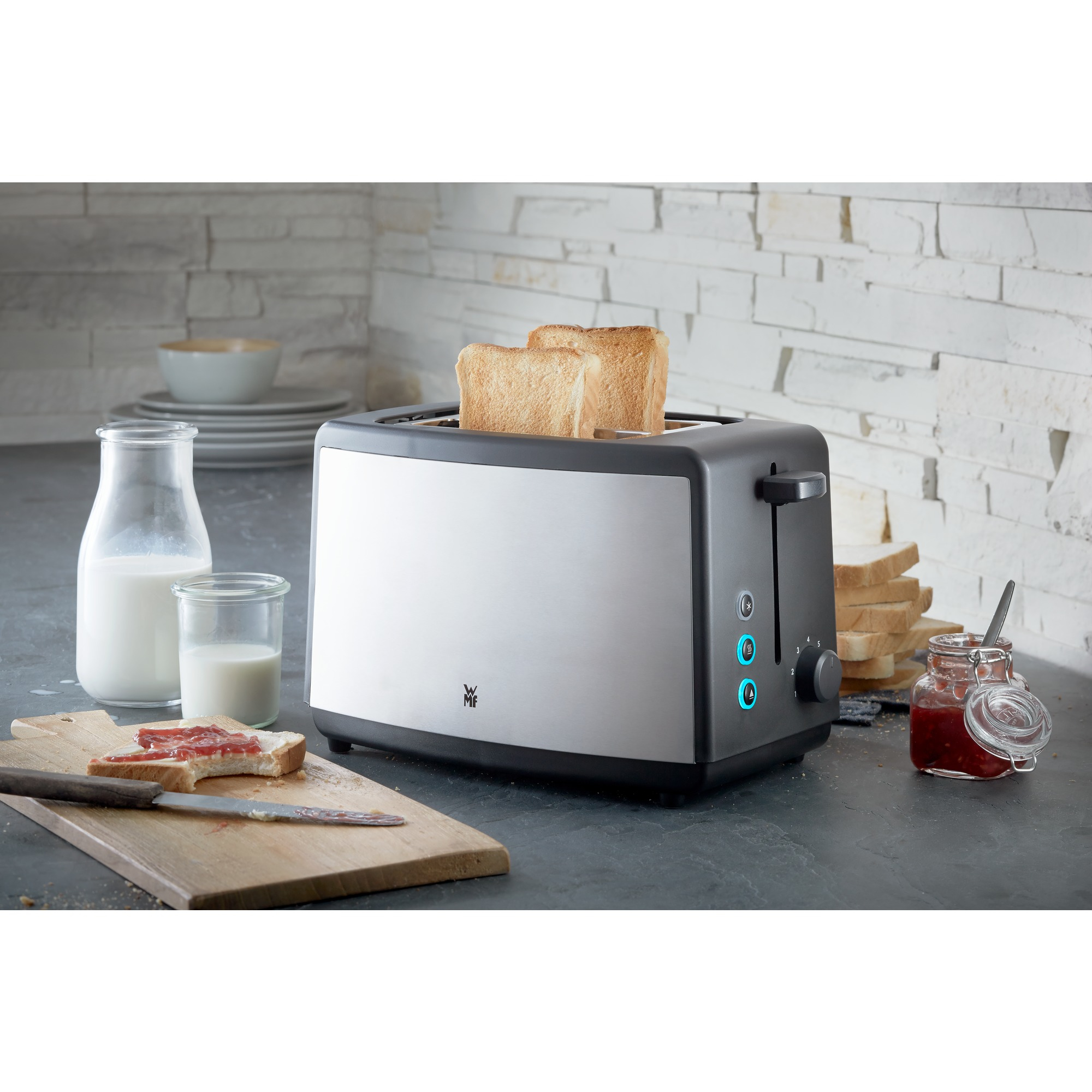 0414110011 - grille-pains 2 fentes 800w cromargan mat - Le grille-pain Bueno 0414110011 de WMF vous permet de réaliser facilement des tartines à la perfection grâce à ses 7 niveaux de brunissage réglables.