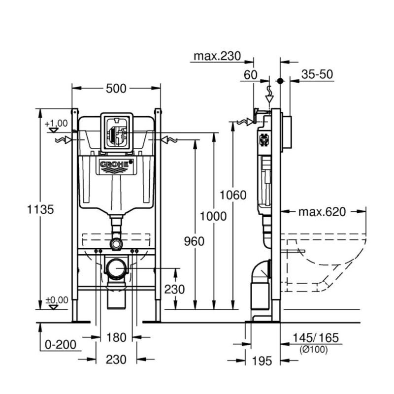 Libellé GROHE Bâti support wc Rapid SL Project + Plaque de commande Skate Air Blanc alpin