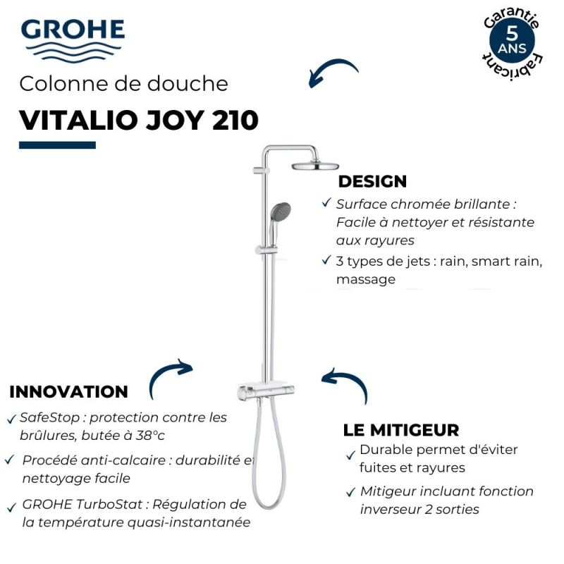 Avantages de la colonne de douche thermostatique Vitalio Joy System 210 Grohe :