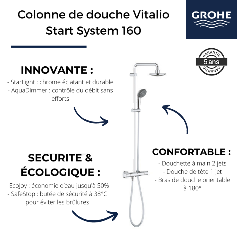 Points forts de la colonne de douche GROHE Vitalio Start System 160