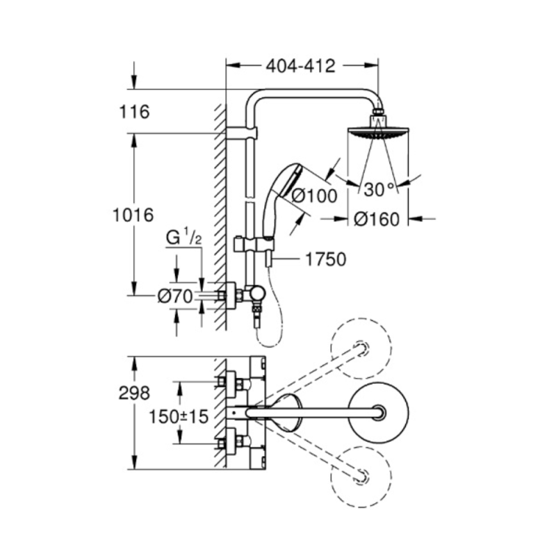 Caractéristiques techniques de la colonne douche GROHE Vitalio Start System 160