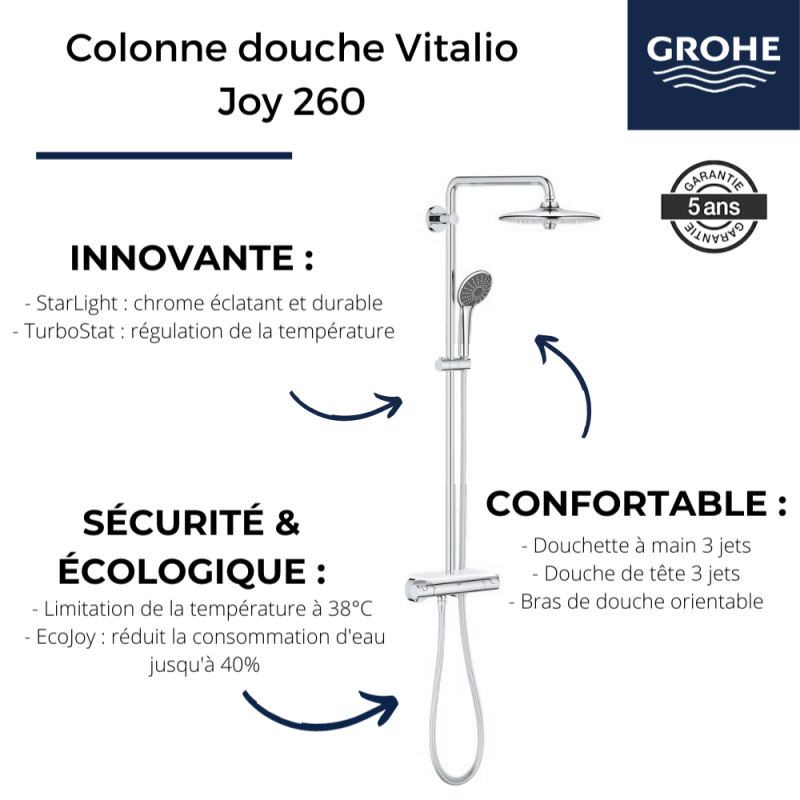 | Libellé | GROHE Colonne douche Vitalio + Porte savon Bau Cosmopolitan |