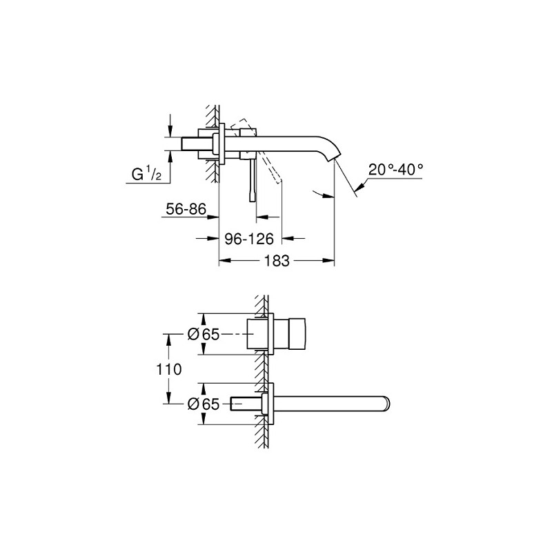Longueur bec du robinet mural Grohe : 18,3 cm