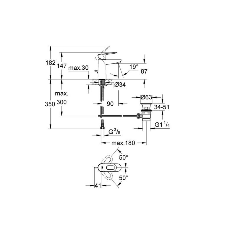 Caractéristiques techniques du lot de 2 mitigeurs lavabo BauLoop Grohe Taille S Grohe