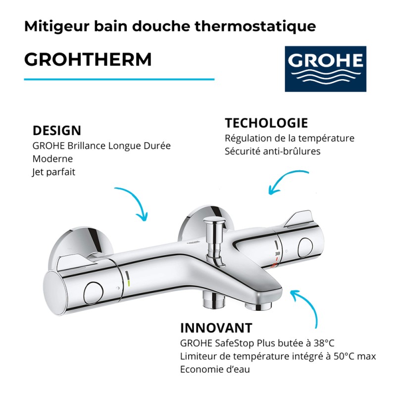 | Libellé | GROHE Mitigeur thermostatique bain douche Grohtherm 800 |