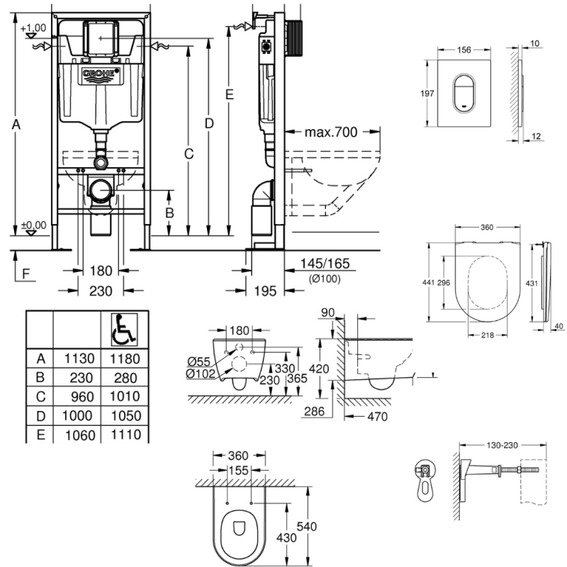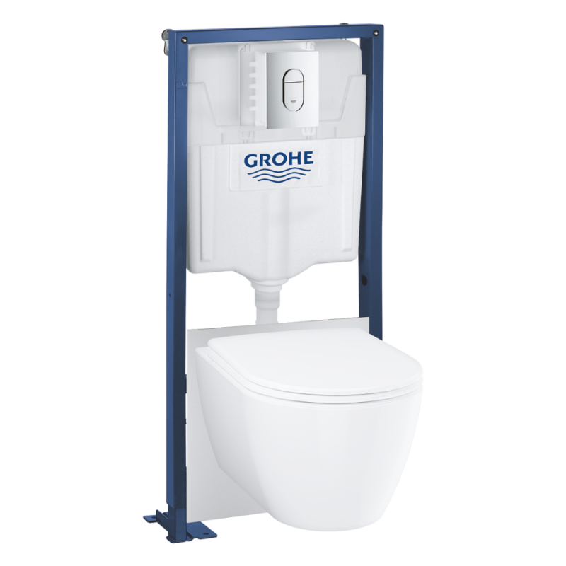 | Libellé | Grohe Pack WC suspendu sans bride Essence + abattant + plaque chromée + bâti Grohe |