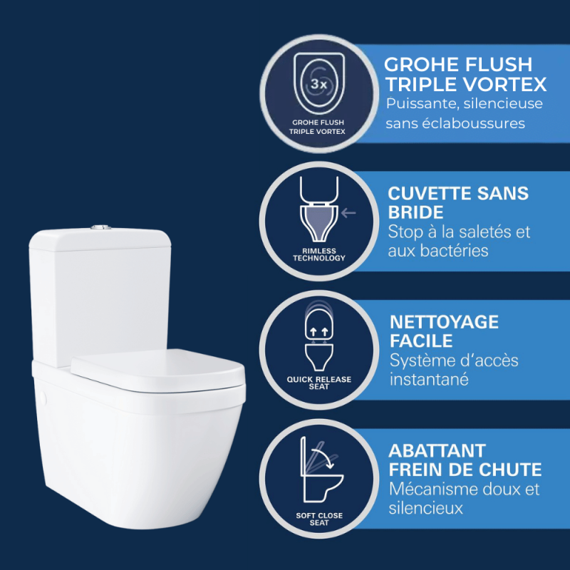 Libellé GROHE WC à poser sans bride Euro Ceramic + abattant et nettoyant