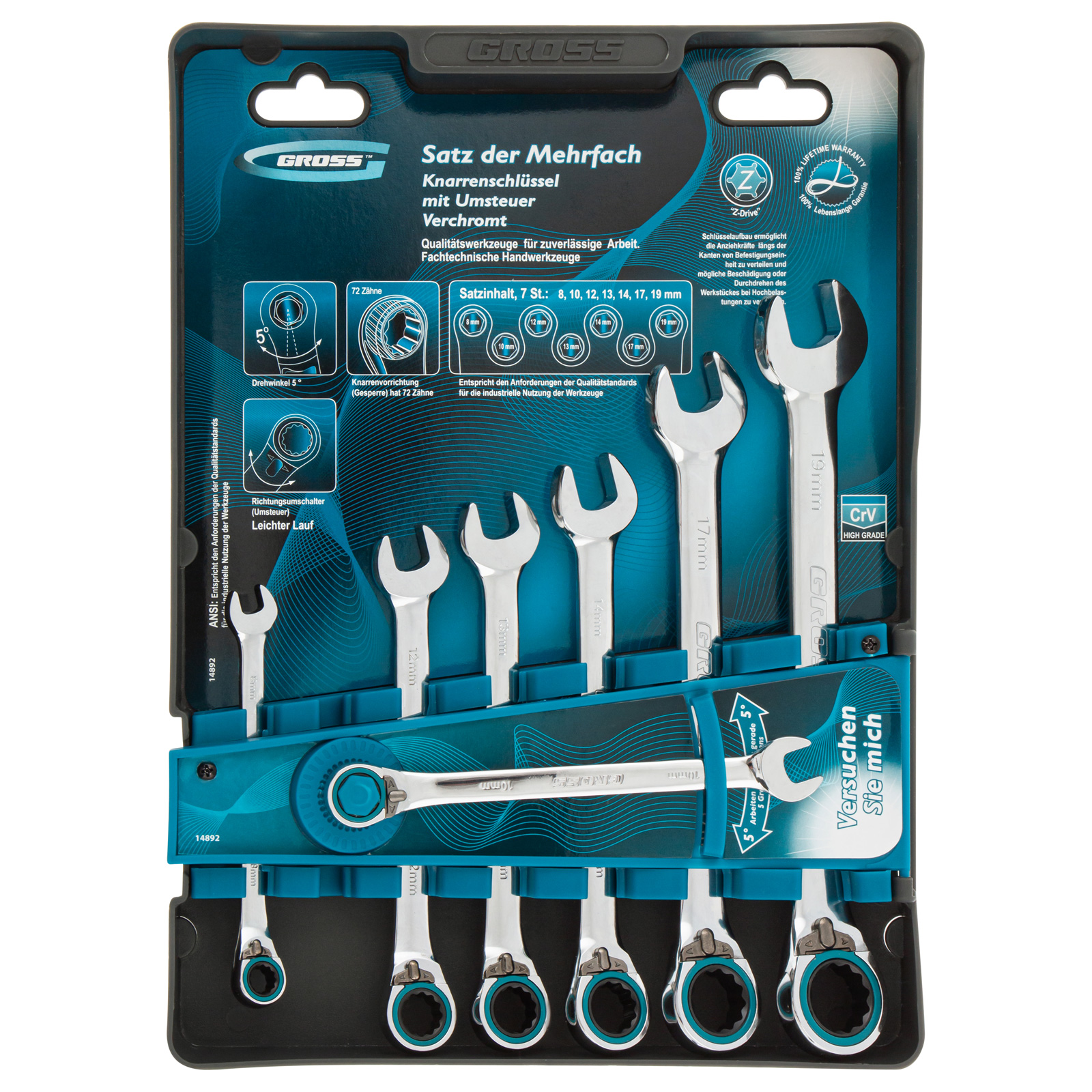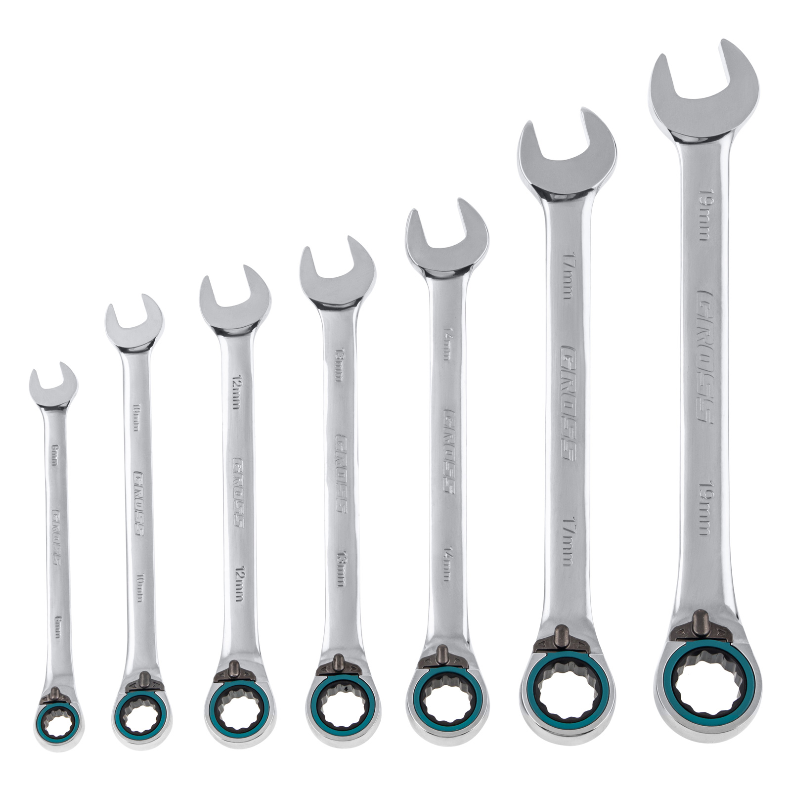 GROSS - Jeu de clés mixtes à cliquet réversible - 8 à 19 mm - 7 pcs