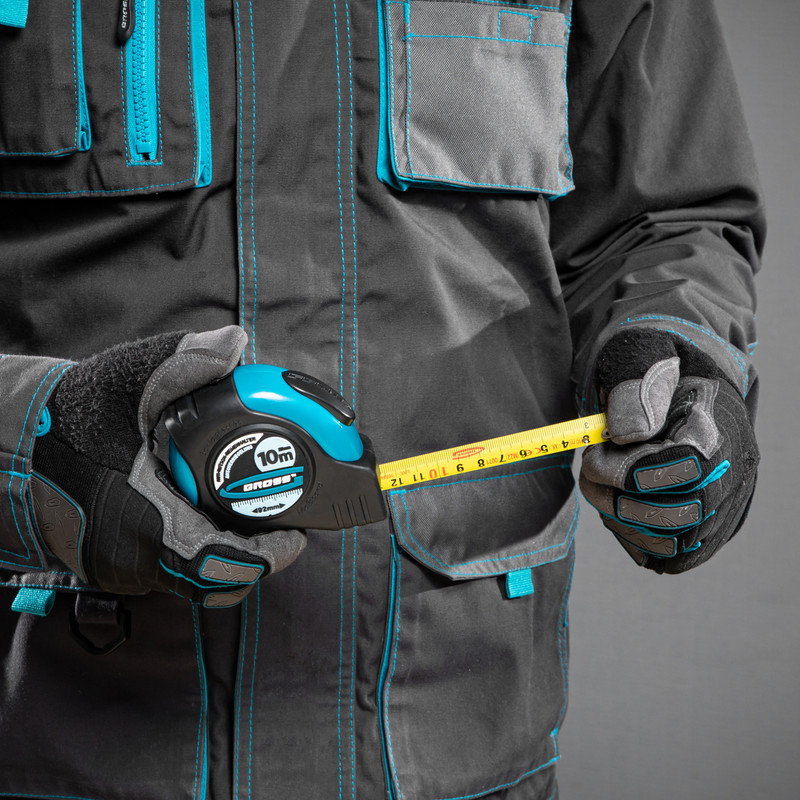 GROSS – Mètre ruban « Schlagfest » – 10 m x 25 mm Mètre ruban 10 m avec corps caoutchouté, magnétique, échelle double face, revêtement en nylon. Pratique, précis et résistant. Un compagnon indispensable ! Le mètre « Schlagfest » de chez GROSS permet de mesurer des longueurs jusqu’à 10 mètres. Il vous sera utile sur tous types de chantiers : construction, rénovation, coupe, etc. Il vous permettra de mesurer précisément longueurs, surfaces, et autres. Résistant à toute épreuve La conception du mètre lui permet de résister aux éventuels chocs et chutes. Le ruban est recouvert de nylon et est protégé contre la corrosion pour une durée de vie accrue. Crochet magnétique Système TrueZero Pratique Le mètre est équipé d’un crochet magnétique facilitant l’emploi. Le crochet sera fermement maintenu sur une surface métallique et vous permettra de réaliser toutes vos mesures aisément. Le système TrueZero assure la précision du zéro du mètre : le ruban est parfaitement étalonné et mesure à partir de 0cm. En cas de défaut de précision, l’utilisateur a la possibilité d’ajuster le crochet. Le crochet de ceinture permet de garder le mètre à portée de main, gain de temps assuré ! La forme ergonomique et le revêtement caoutchouté du corps permettent un maintien optimal. Caractéristiques Général Couleur(s) Noir et bleu Gamme Schlagfest Aimanté Oui Mesure Fonction du produit Mesure de longueurs Longueur règle / ruban 10 m Unité(s) de mesure Mètre Type d'affichage Analogique Longueur Type de mètre A ruban Dimensions et poids Largeur du ruban 25 mm Dimensions brutes - article emballé (L x l x H) 155 x 120 x 50 mm