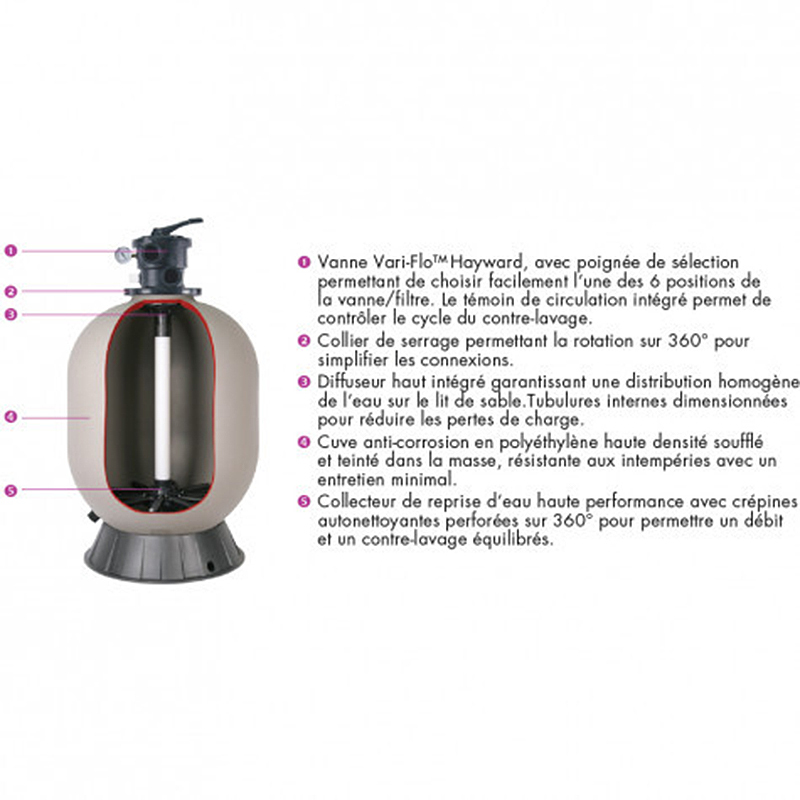 | Libellé | Groupe de filtration 6m3/h avec pompe et filtre à sable serie pro - s166t8103 - hayward |