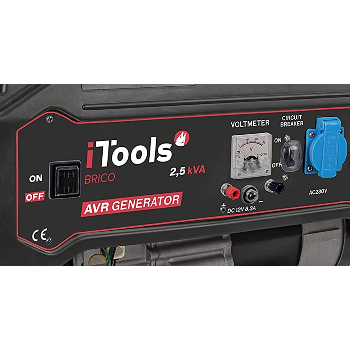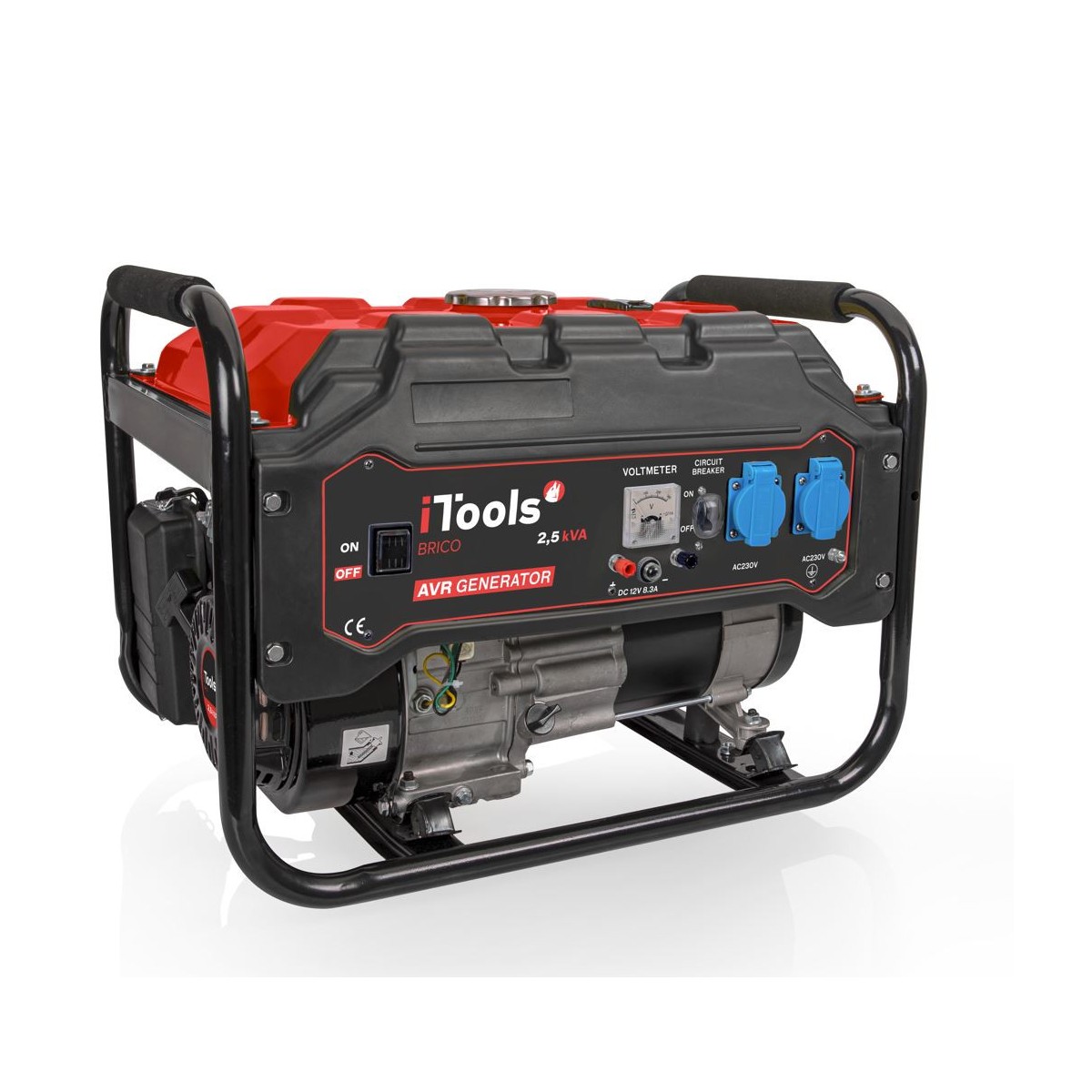 Groupe électrogène 2500W Moteur Essence 4T 6.5 CV 196 cm³ Protection AVR Autonomie 13h ITOOLS