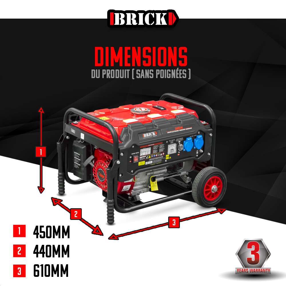Le groupe électrogène 3000W de Brick est l'outil parfait pour alimenter tous vos appareils en électricité. Que ce soit pour une utilisation domestique ou sur un chantier, il s'adapte à tous les besoins.