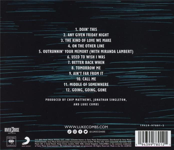 Le troisième album de Luke Combs, la nouvelle star de la country-rock US qui vient d'aligner son 14e single numéro 1 des charts Country aux US. Cet album est le premier du dyptique qu'il forme avec le nouvel album de Luke Combs « Gettin'Old ».