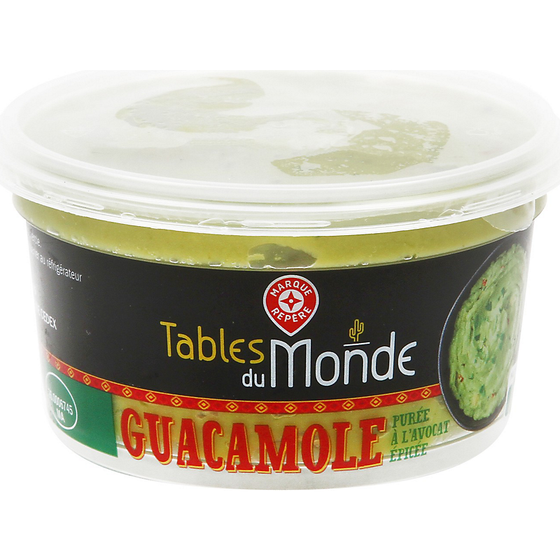 Ingrédients: Avocat 92,4 %, oignon, poivron rouge 1,8 %, sel, oignon déshydraté, coriandre 0,6 %, antioxydant: acide ascorbique, épaississant: alginate de sodium, acidifiant: acide citrique, piment jalapeno 0,06 %, ail.