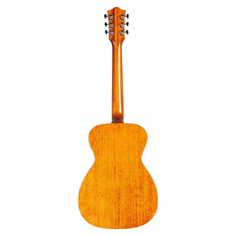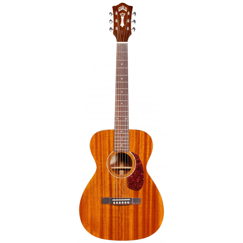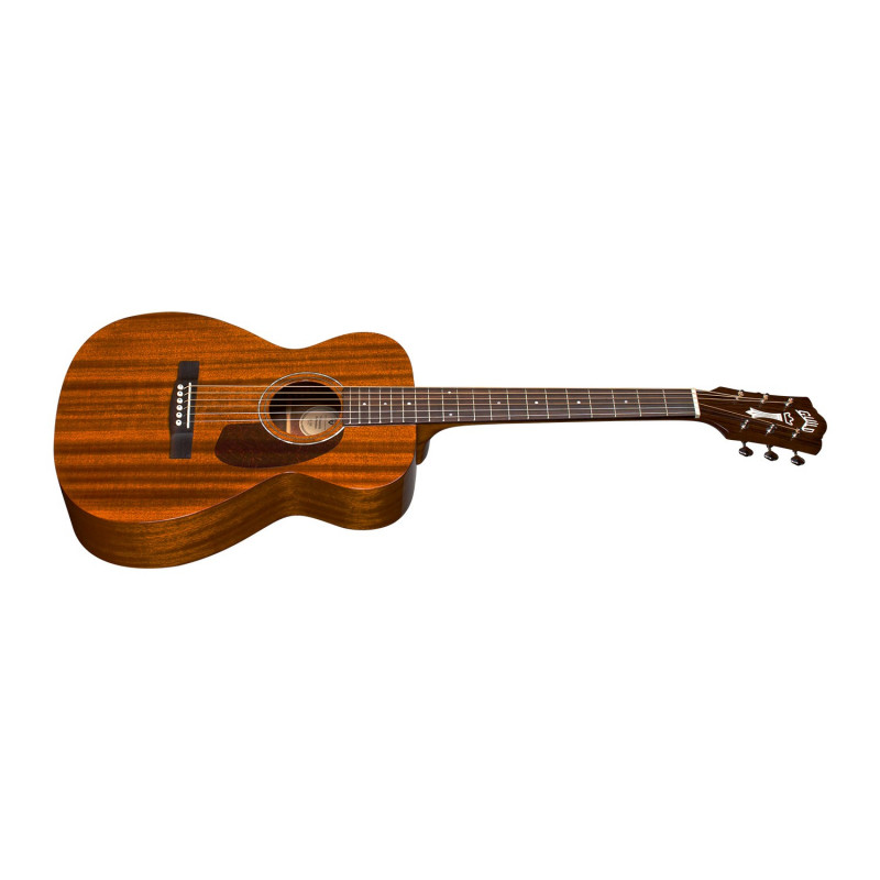 Avec son corps confortable et sa voix distinctive, la M-120 offre un excellent équilibre et un son délicat. Construit avec une table, un dos et des éclisses en acajou africain massif, le diapason de 24 ¾ ”et la largeur de sillet de 44,4mm sur un manche Guild de forme vintage rendent cette guitare de taille concert (M) facile à jouer. Le M-120 comprend une touche et un chevalet en palissandre, un sillet en os, une rosace en nacre et un pickguard type écaille de tortue. Ce modèle présente également l'emblématique tête Chesterfield de Guild, qui rappelle les Guild des années 1960. Finition Naturel