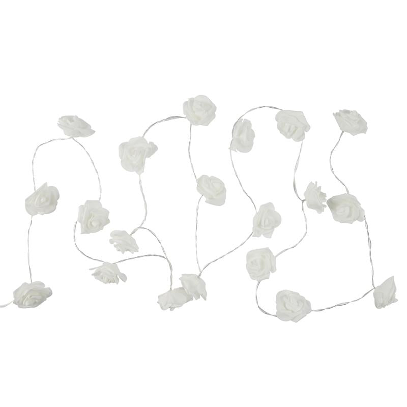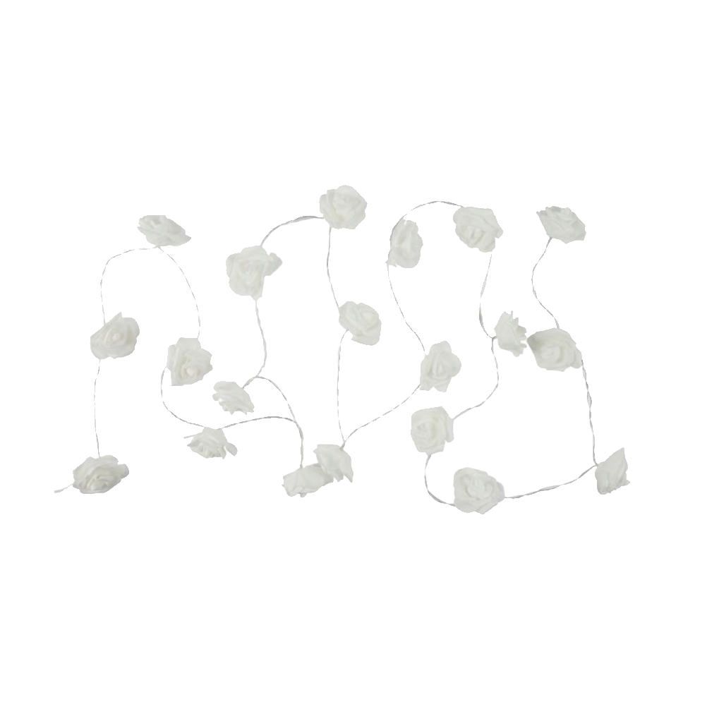Guirlande lumineuse Roses Blanches - Fonctionne avec 2 piles AA LR6 (non fournies) - Matières : plastique et abs Dimensions de la guirlande lumineuse : 1.8 mètres