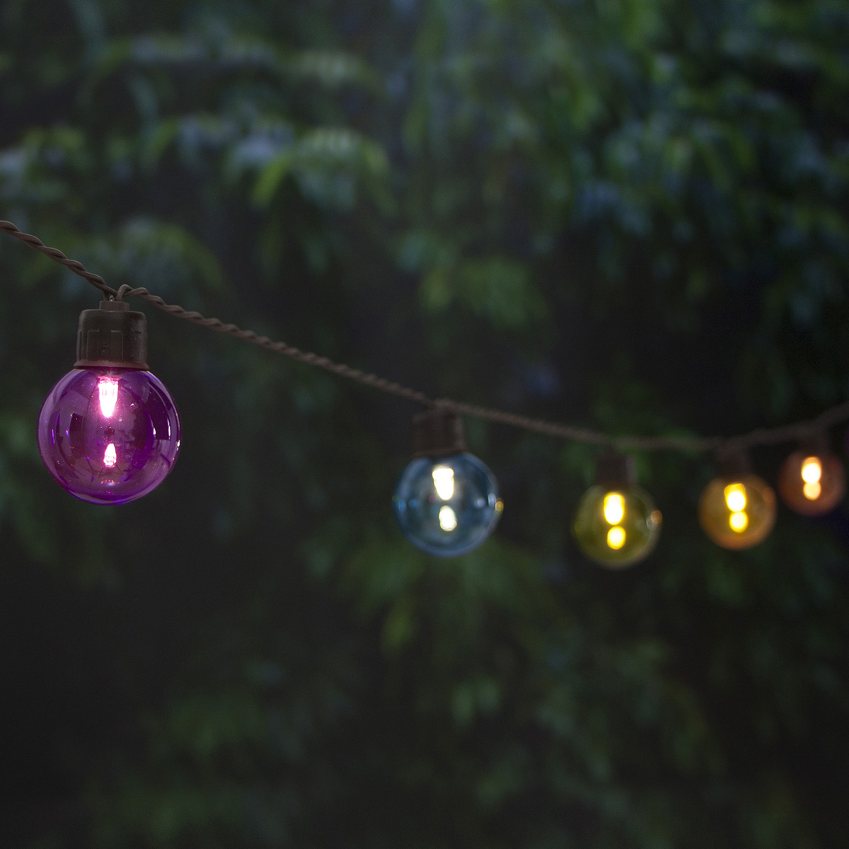 Guirlande comportant 40 ampoules rondes de couleurs vissées.
