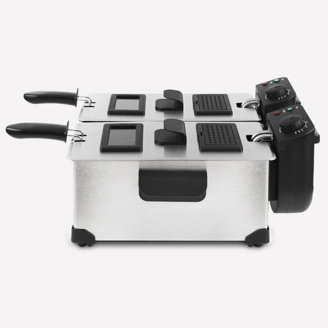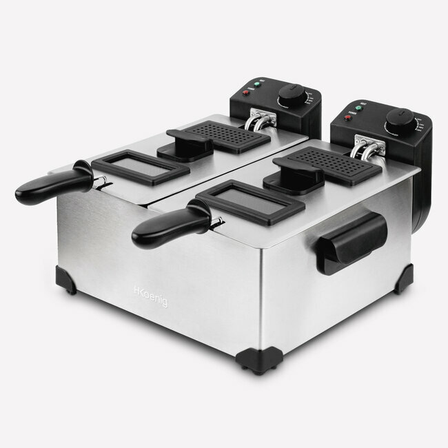 H.Koenig DFX600 friteuse Double 6 L Autonome 3600 W Noir, Acier inoxydable