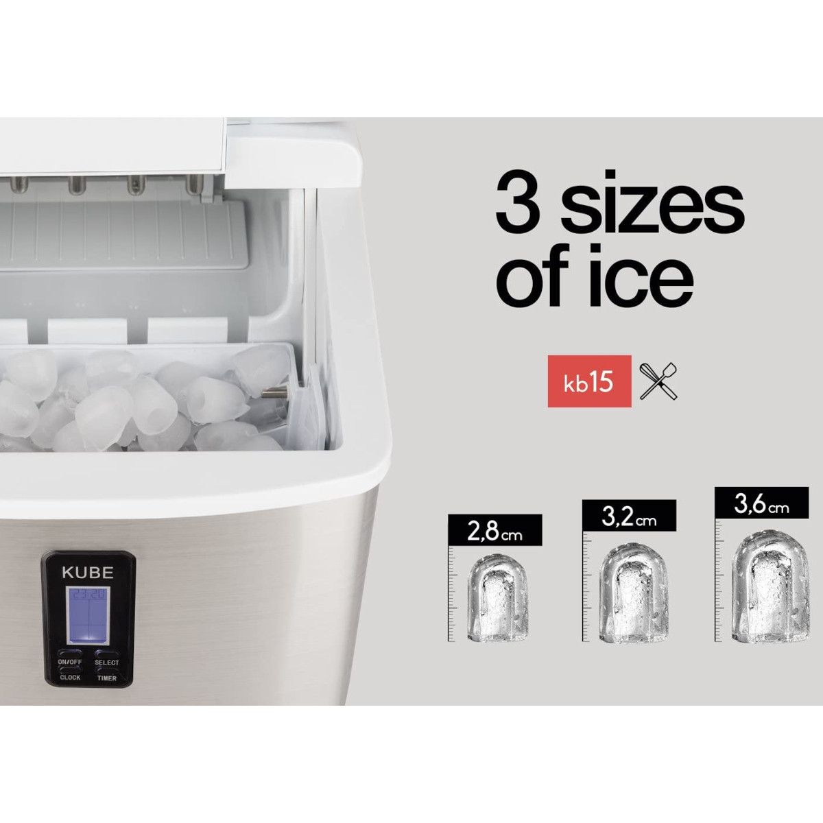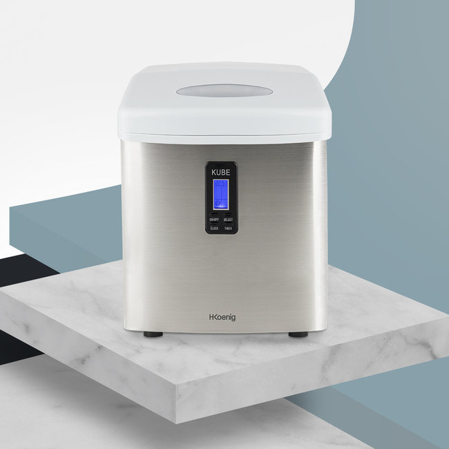 H.Koenig KB15 machine à glaçons Machine à glaçon portable 15 kg/24h 100 W Acier inoxydable, Blanc