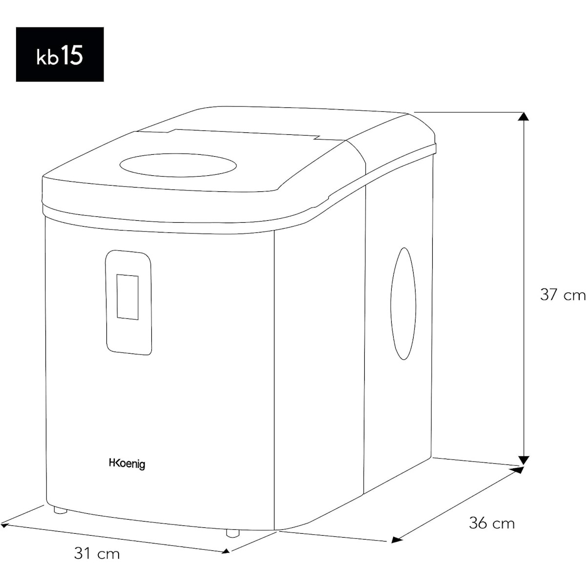 | Libellé | H.Koenig KB15 machine à glaçons Machine à glaçon portable 15 kg/24h 100 W Acier inoxydable, Blanc |