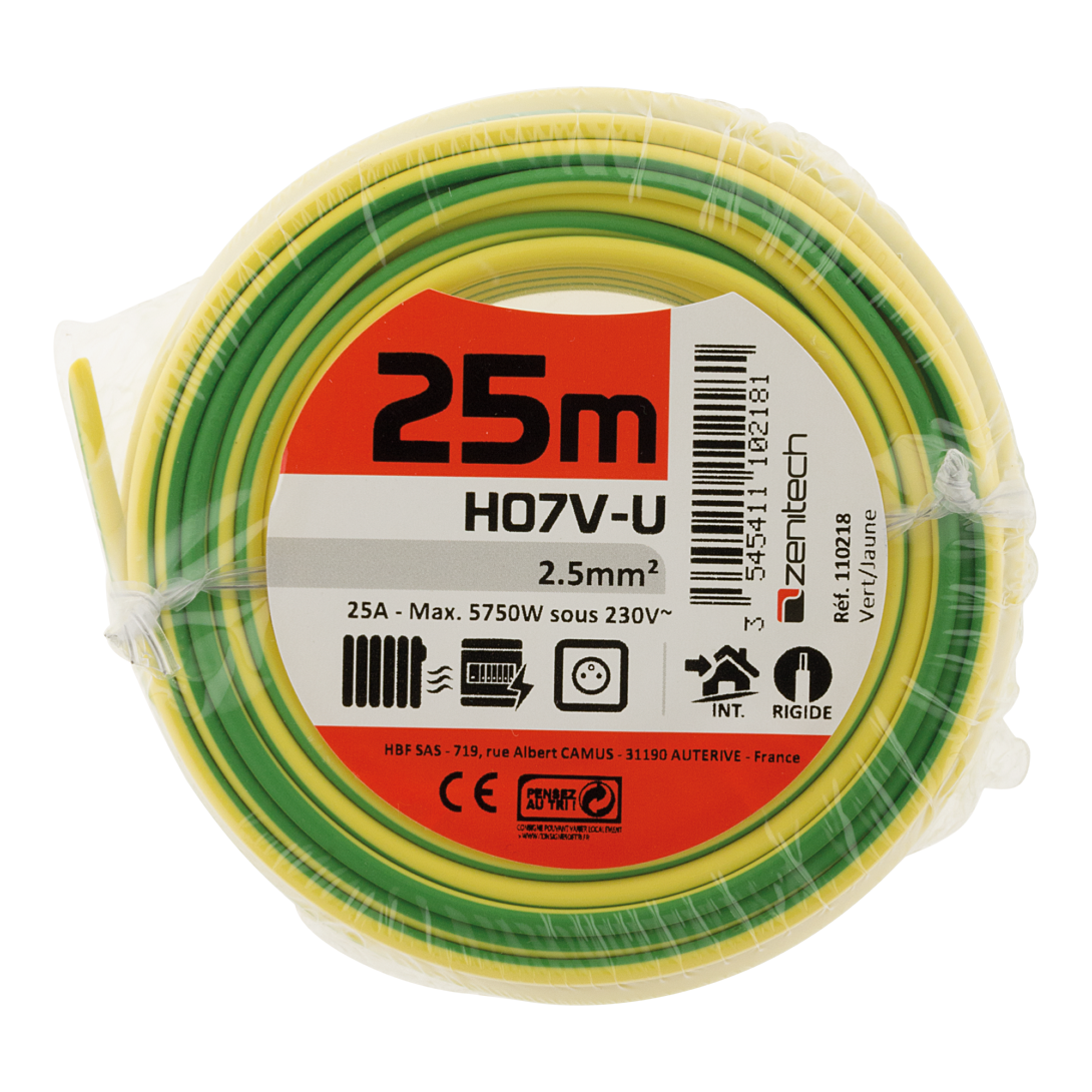 | Libellé | H07V-U 2,5MM² 25M J/VERT FILM |